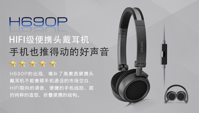 商品名称:漫步者/Edifier 耳机头戴式线控带麦手机电脑重低音音乐 H690P
