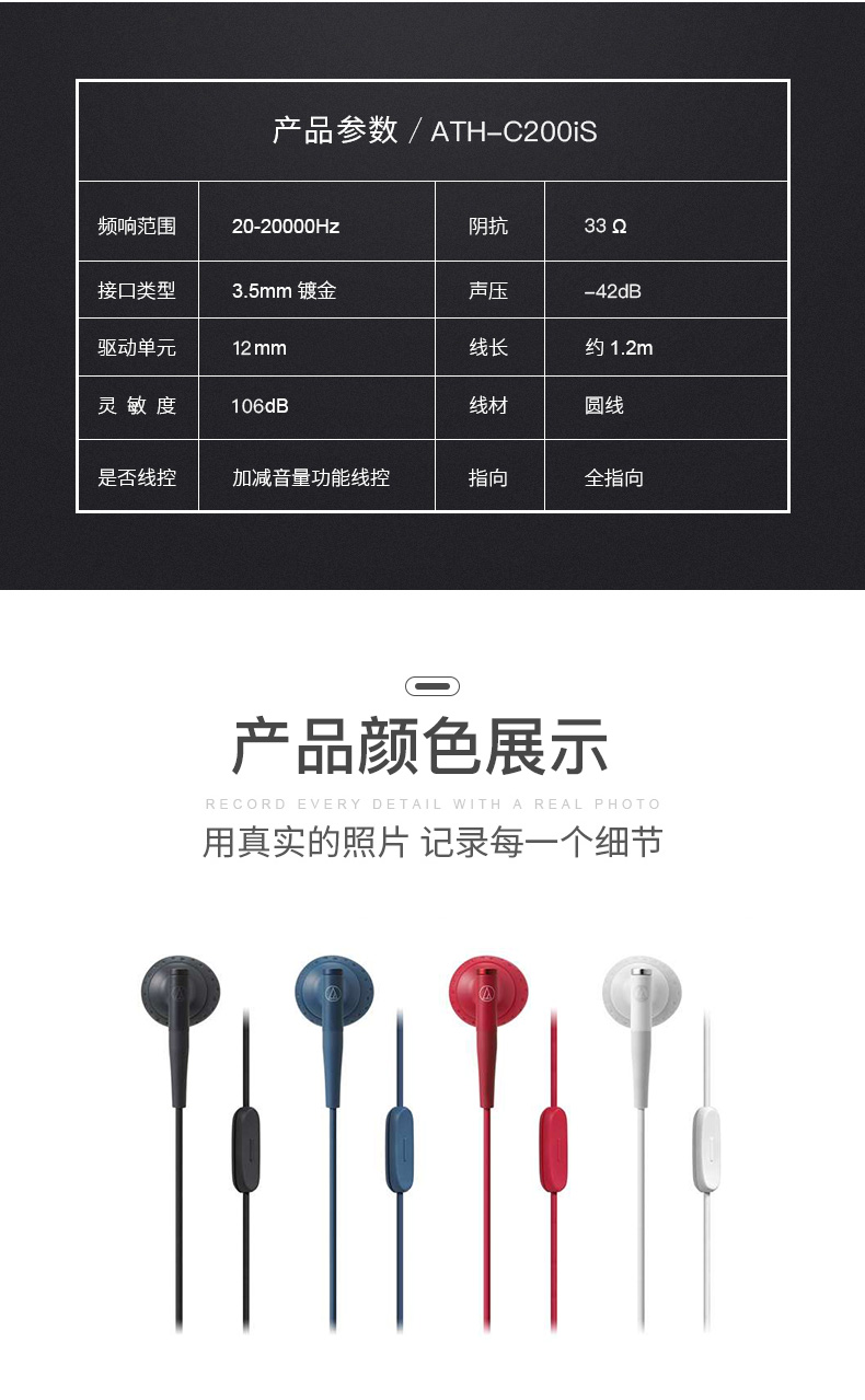 商品名称:铁三角/Audio Technica 半入耳手机通用线控耳麦耳机 ATH-C200IS