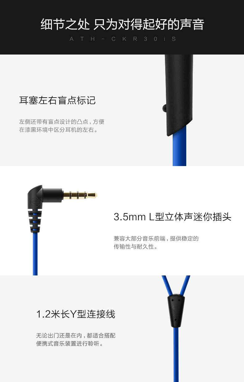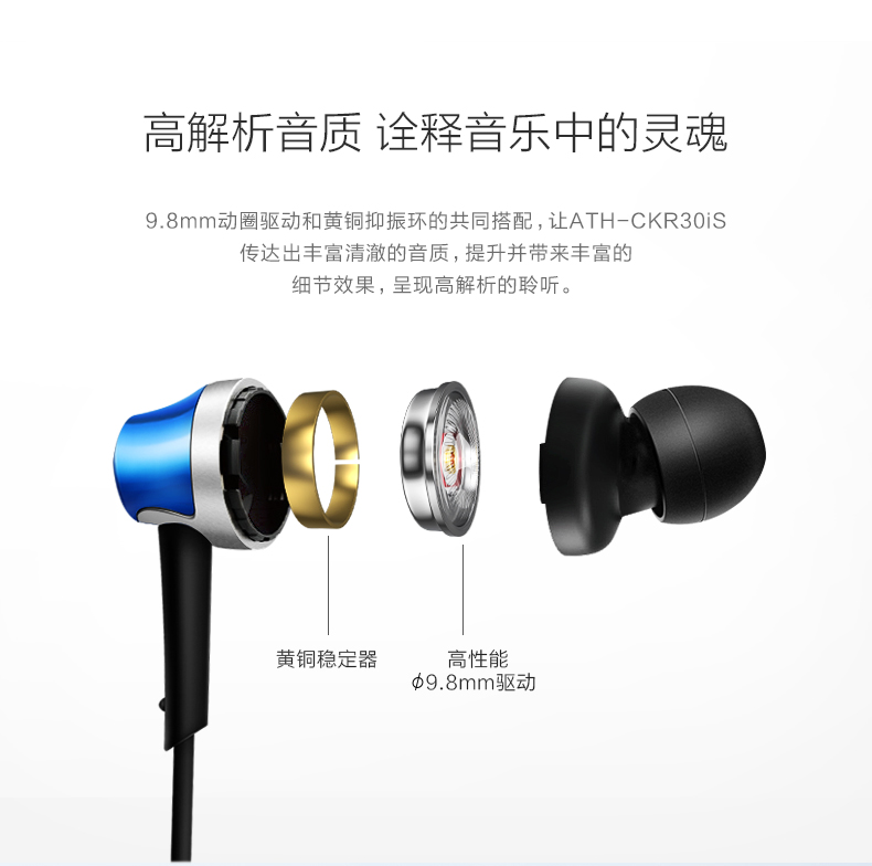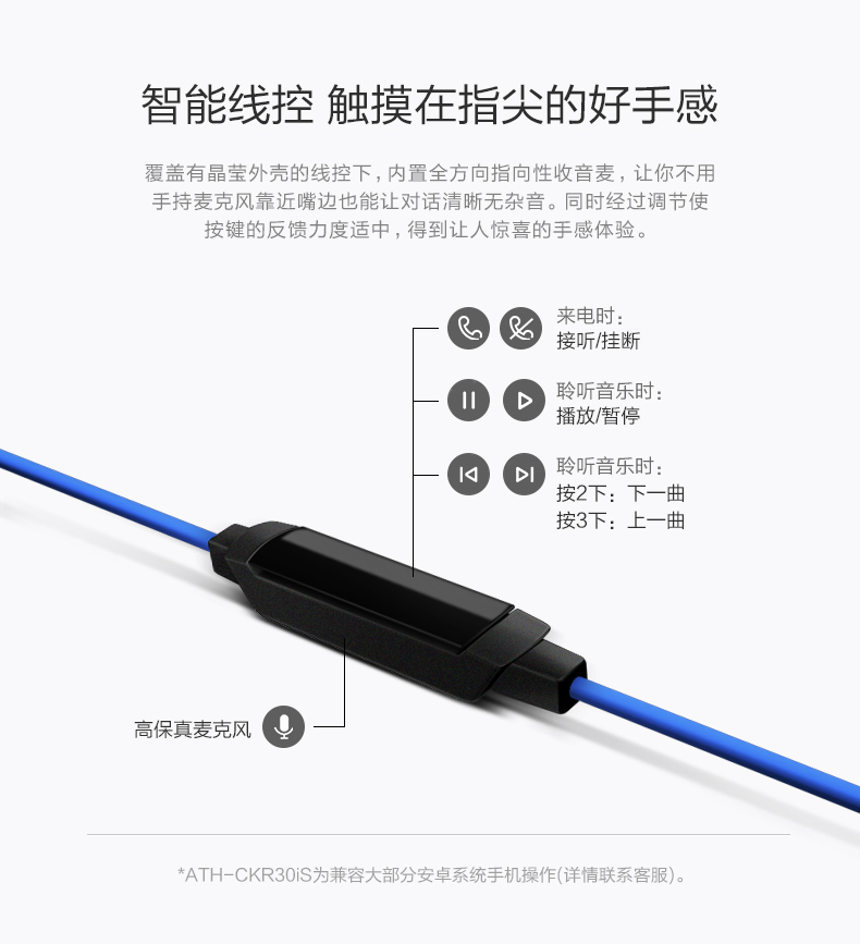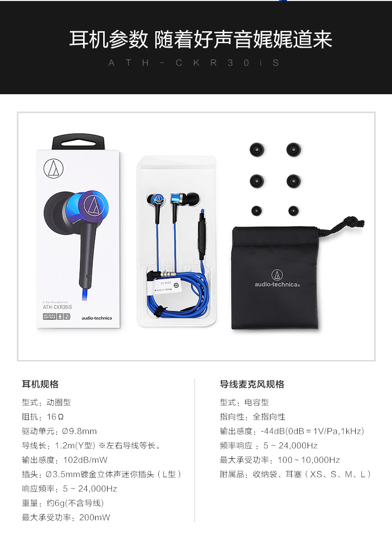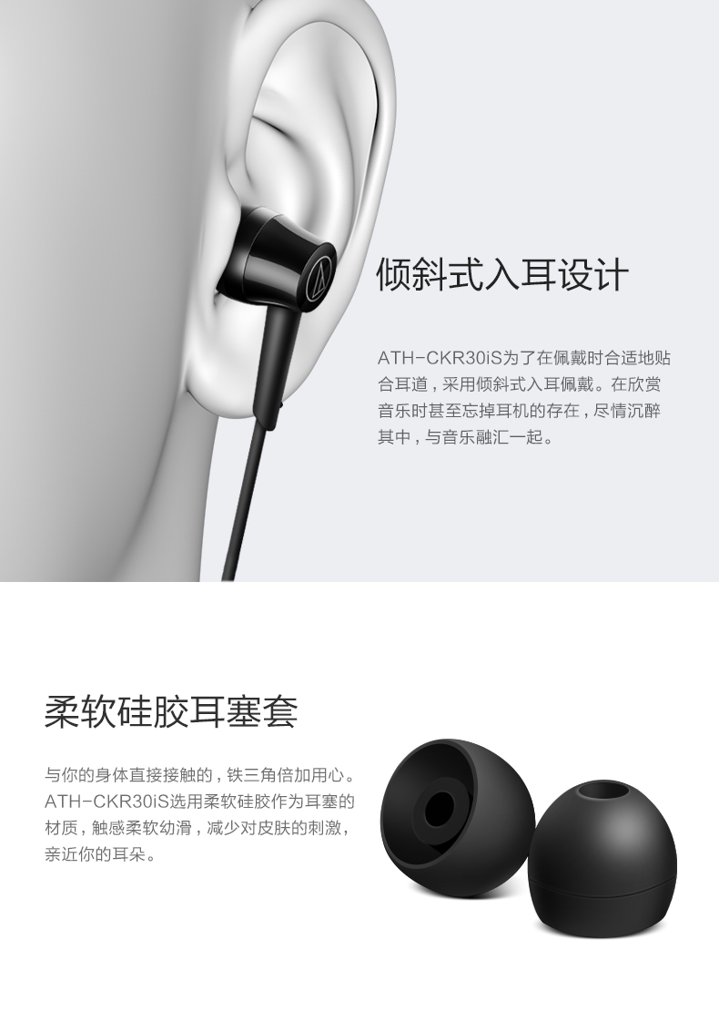 商品名称:铁三角/Audio Technica 手机通话线控带麦入耳式耳机 ATH-CKR30iS