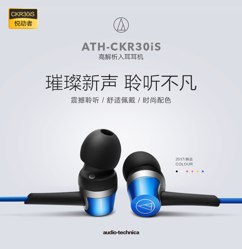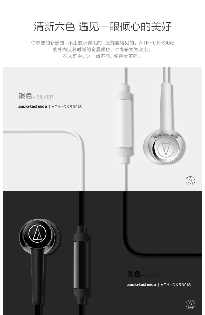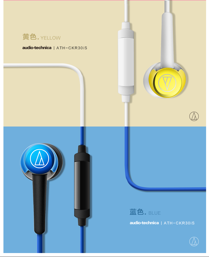 铁三角/Audio Technica 手机通话线控带麦入耳式耳机 ATH-CKR30iS