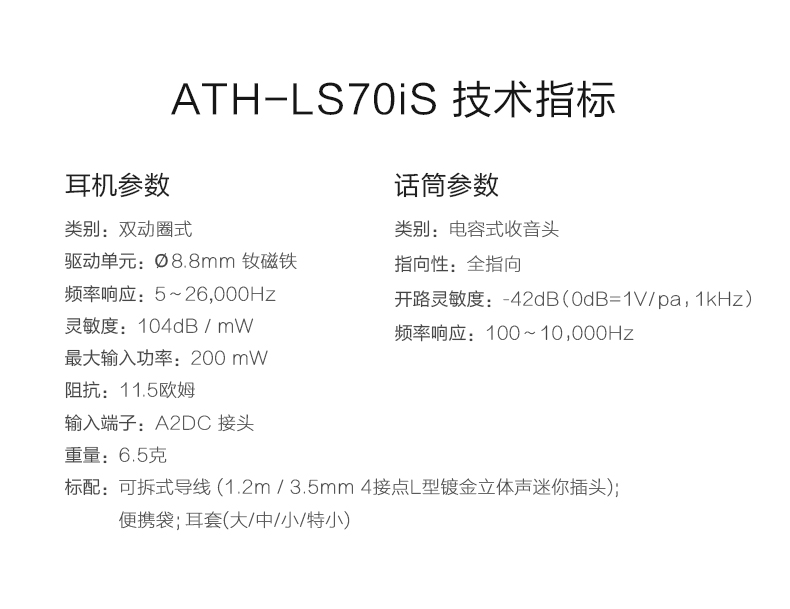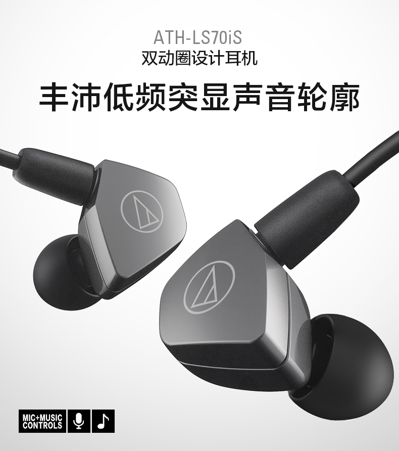 商品名称:铁三角/Audio Technica 双动圈手机带线控入耳式耳机 ATH-LS70iS