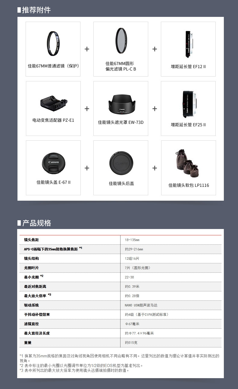 佳能 18-135 usm 标准变焦单反镜头 EF-S 18-135MM F/3.5-5.6 IS USM