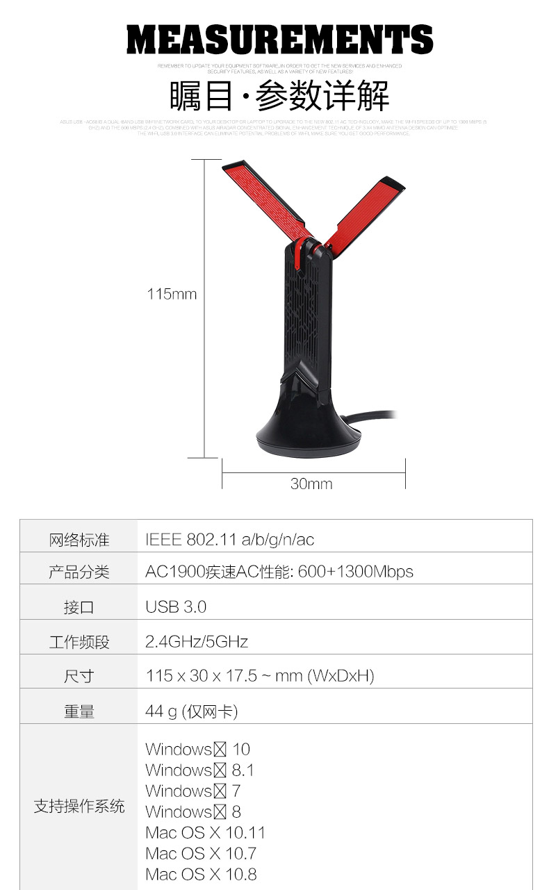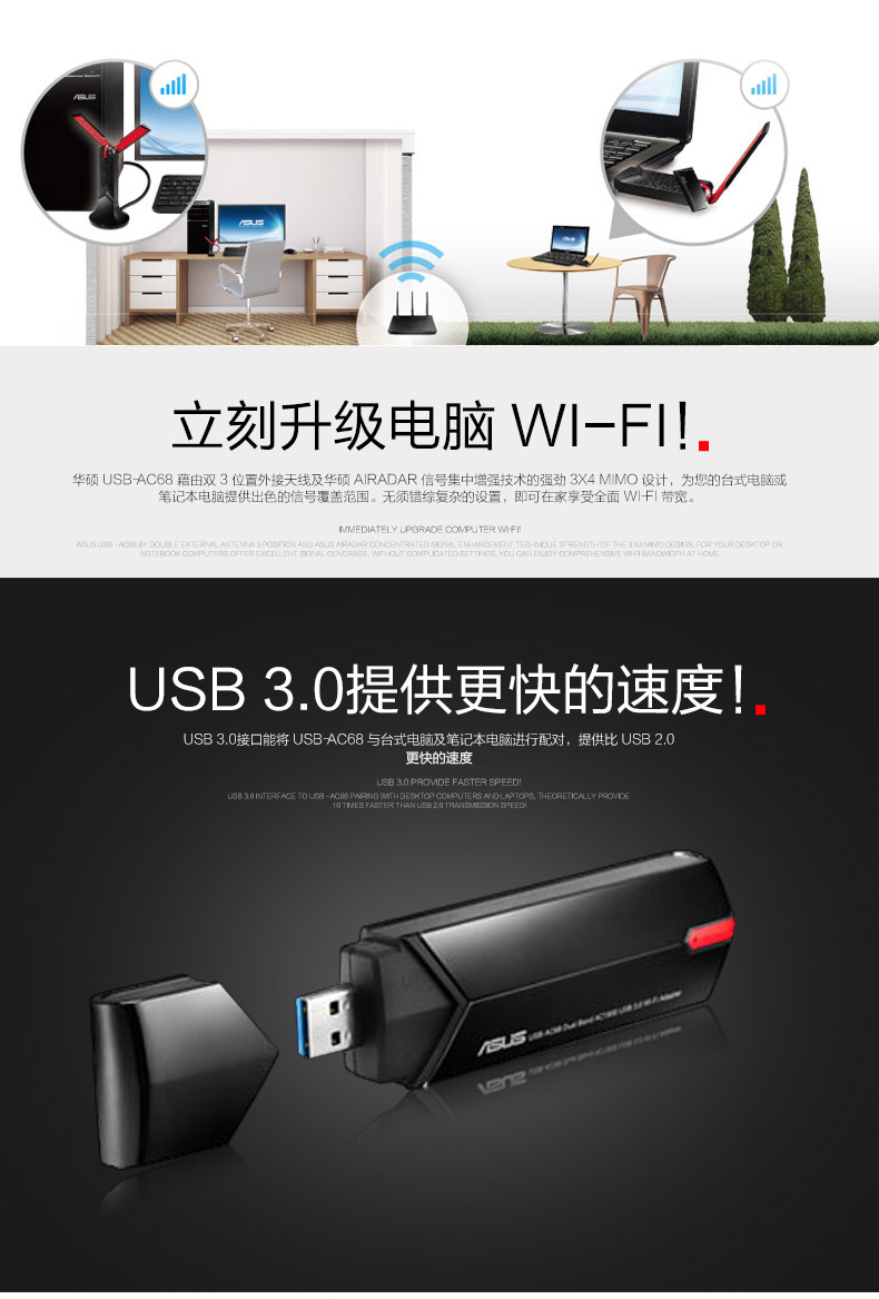 商品名称:华硕 USB-AC68 双频无线USB3.0台式机笔记本wifi无线网卡