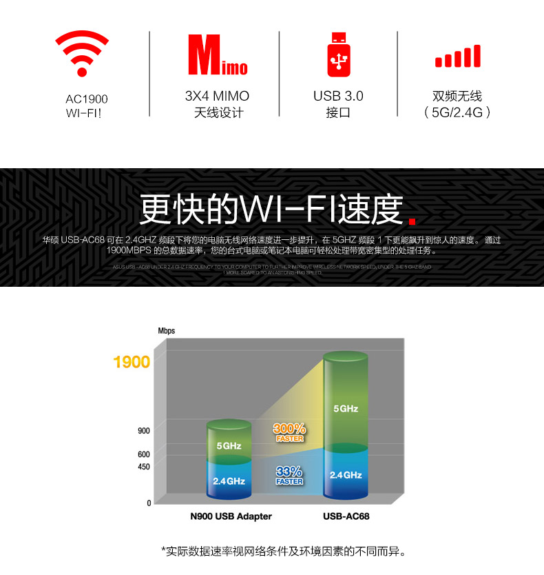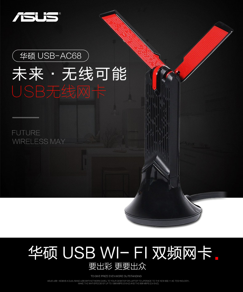 华硕 USB-AC68 双频无线USB3.0台式机笔记本wifi无线网卡