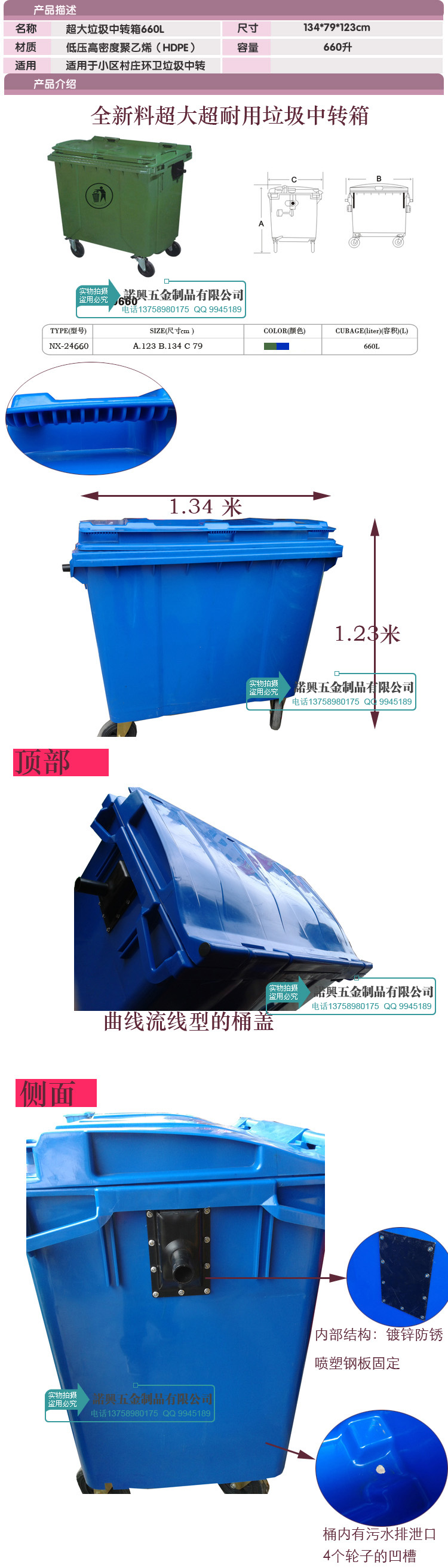 6.桶体与盖采用高密度抗冲击聚乙稀(HDPE)一次注模成型。