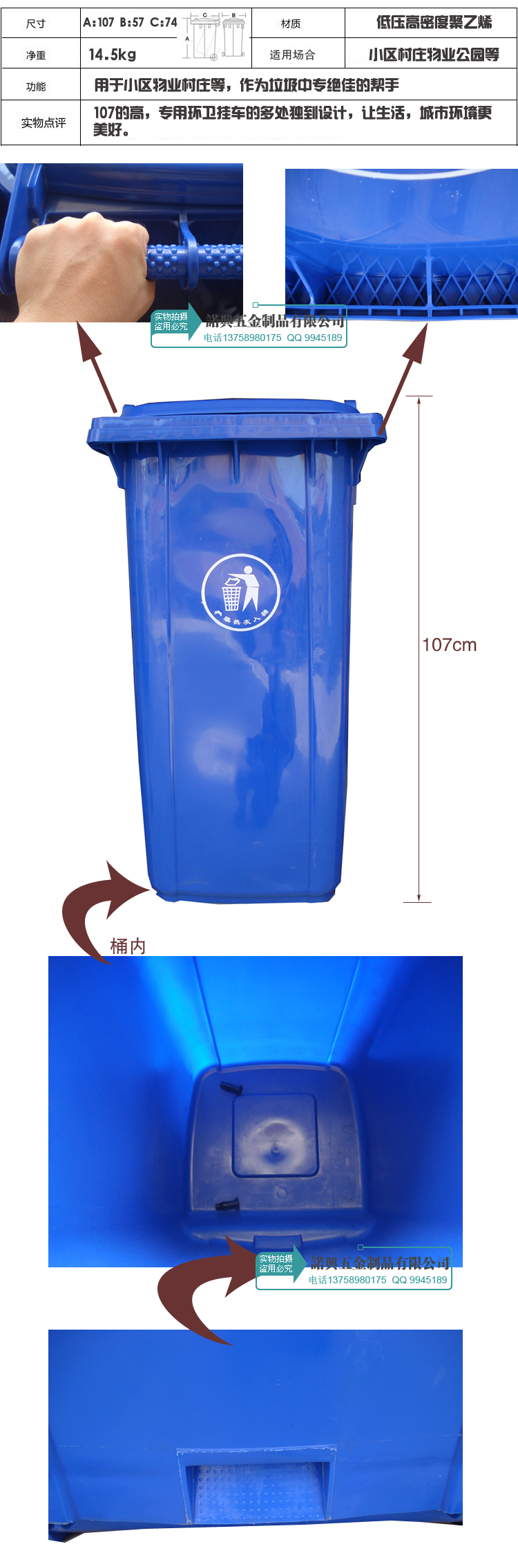 商品名称:国产 环卫垃圾桶小区物业户外垃圾桶大塑料240升 垃圾车挂车桶B型 NX-240G