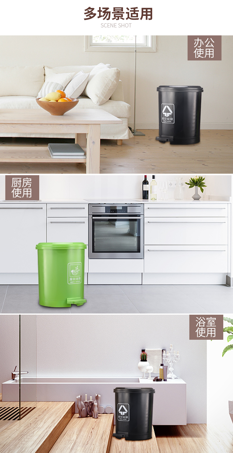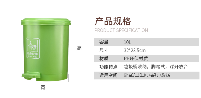 商品名称:国产 脚踏式垃圾桶带盖创意卫生间客厅厨房家用卧室脚踩农村分类NX-SN001