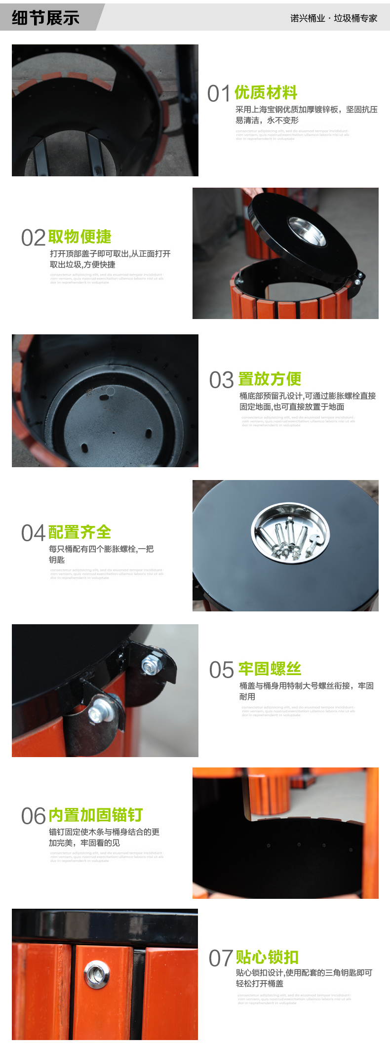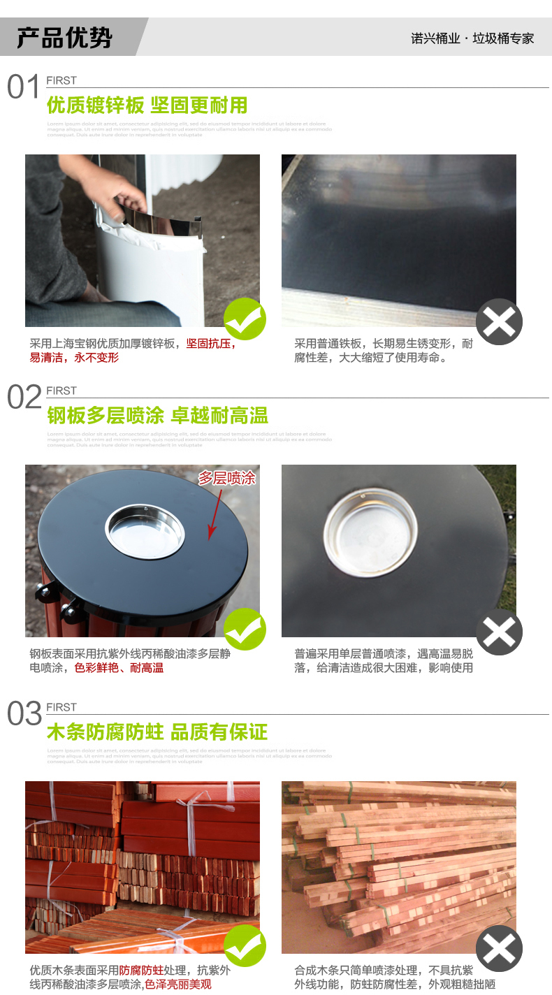 商品名称:国产 钢木垃圾桶户外 公园景观垃圾筒室外分类垃圾桶果皮箱 80101