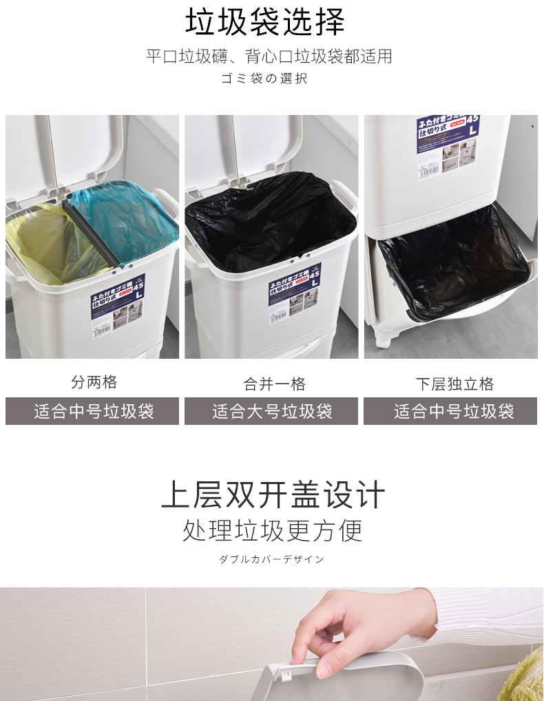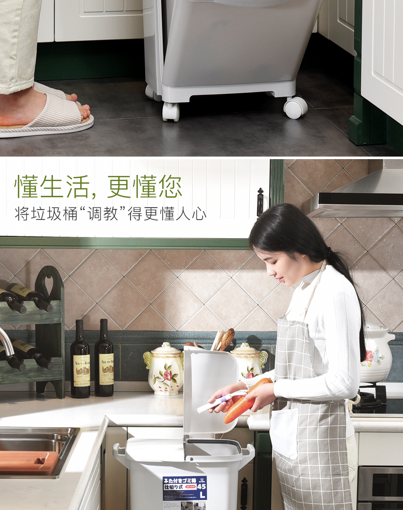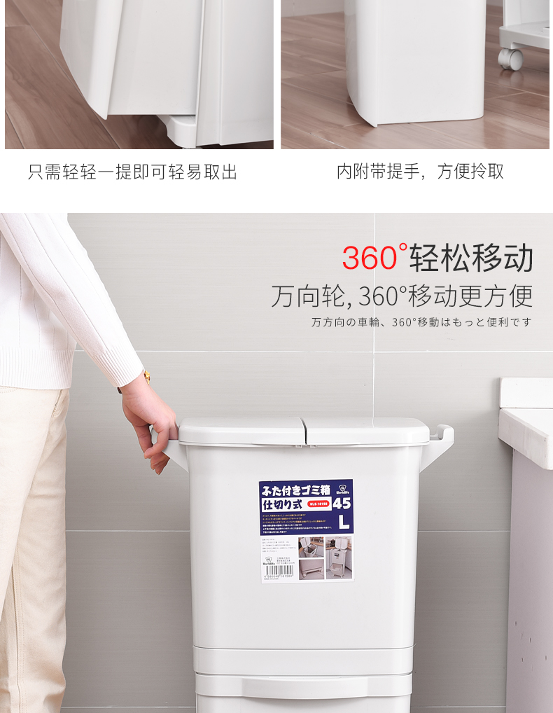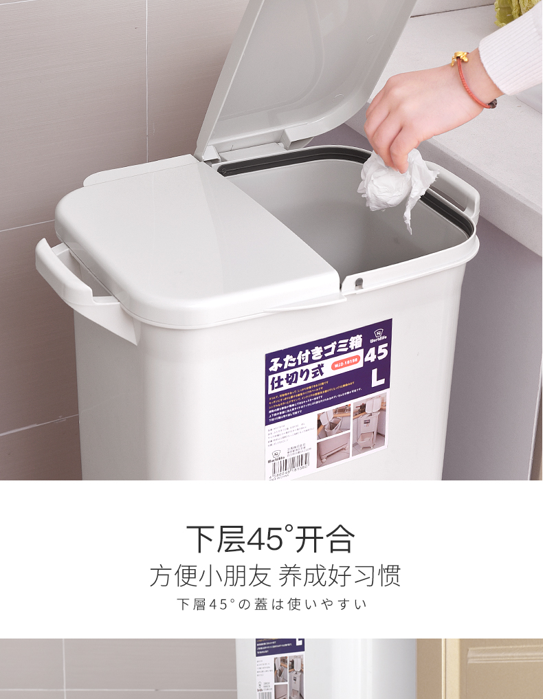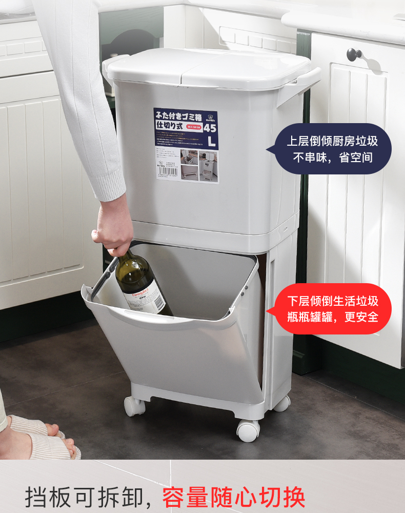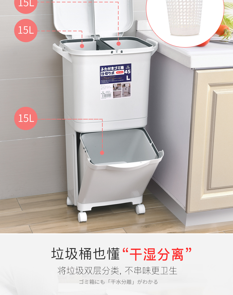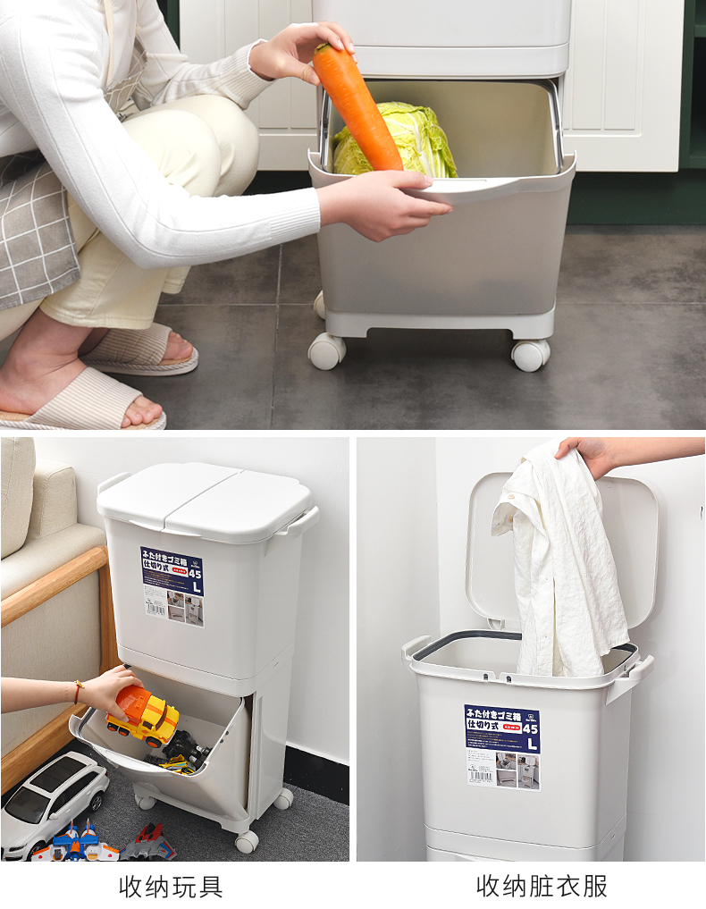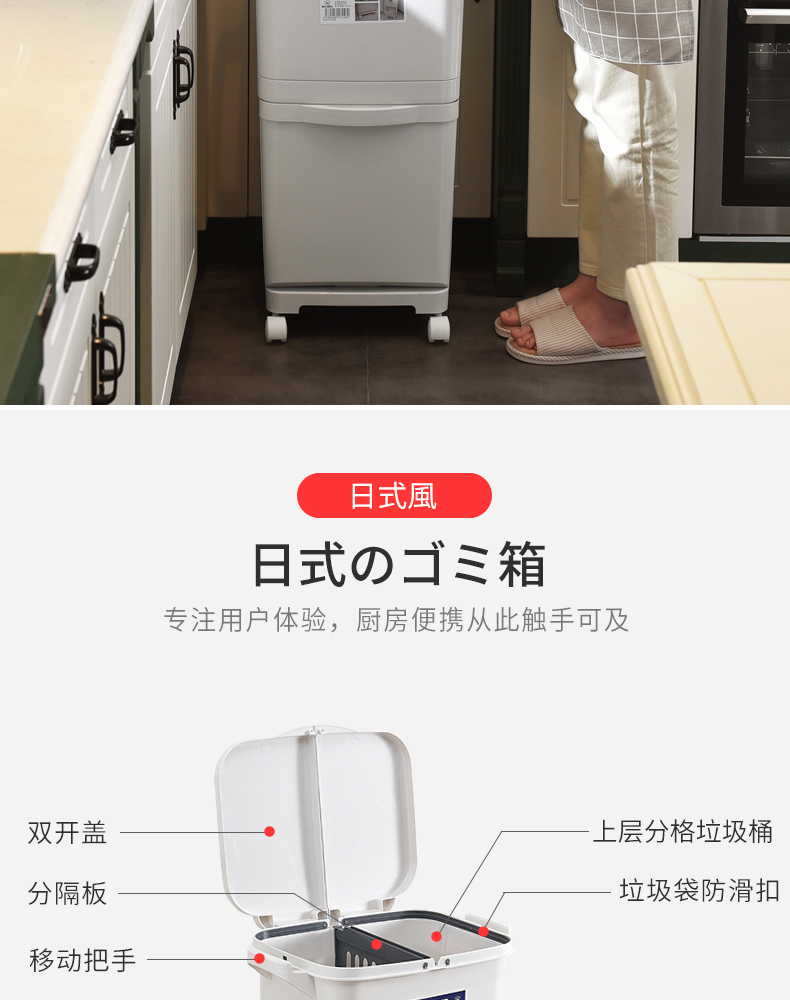 商品名称:国产 日式垃圾桶家用厨房客厅创意卧室大号双层分类带盖可移动大垃圾箱2398
