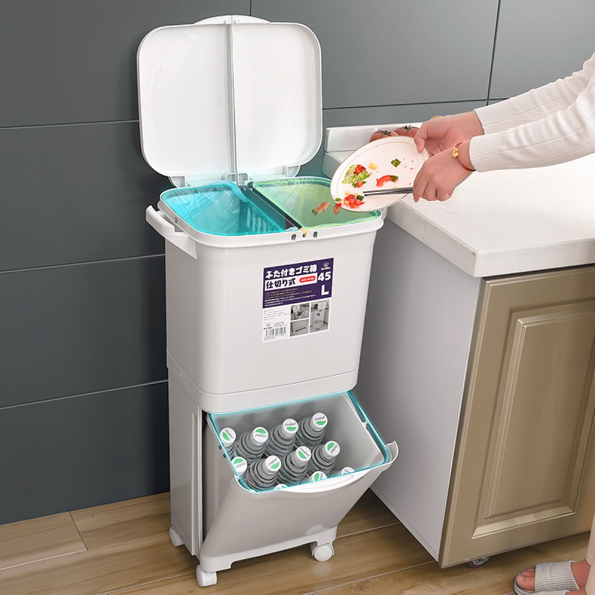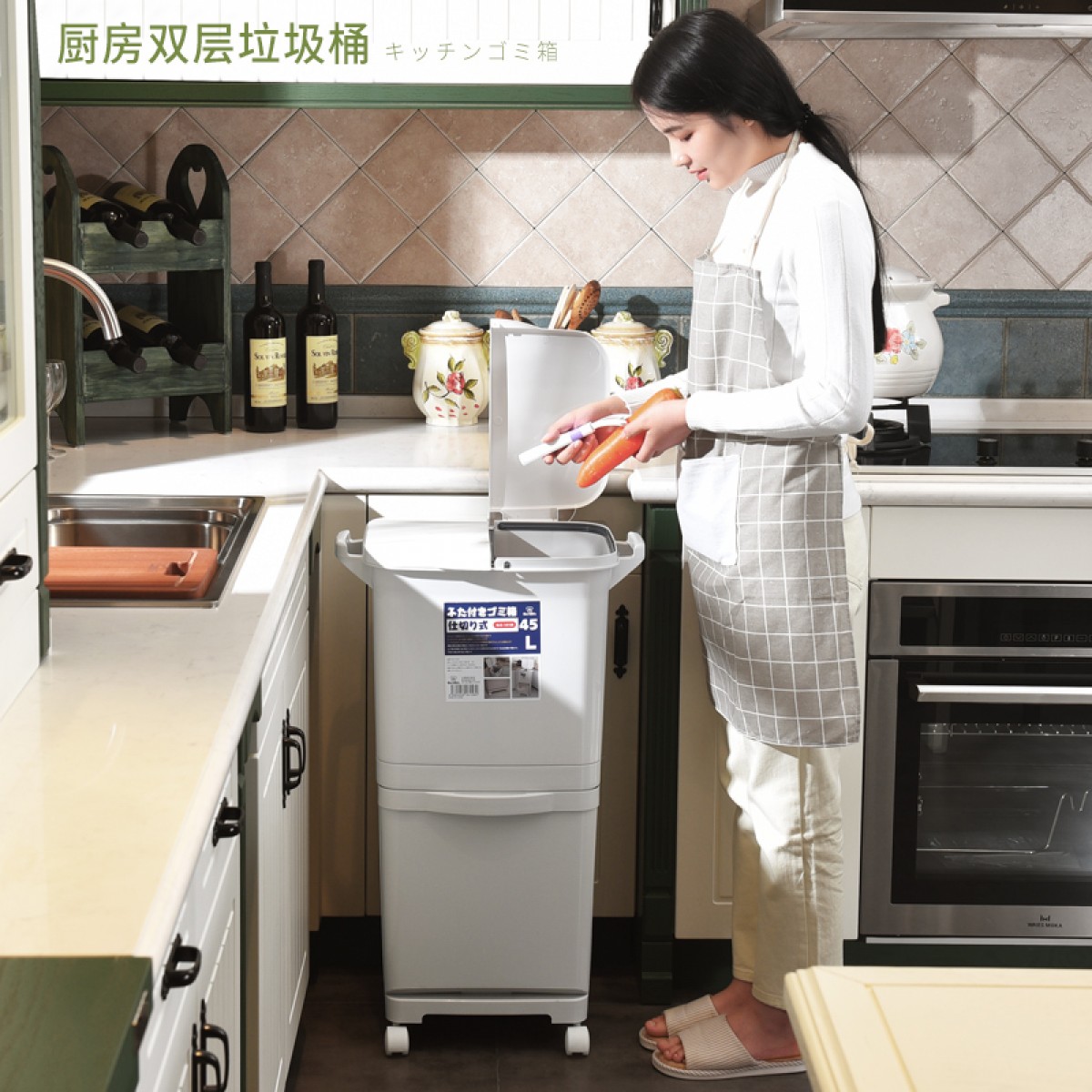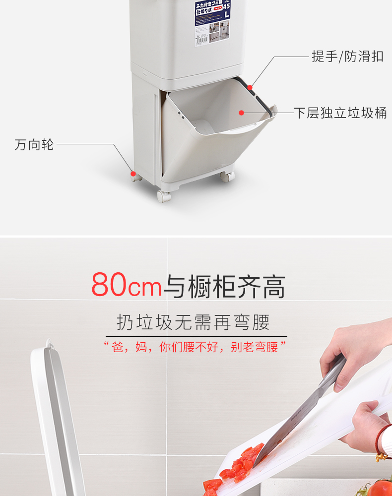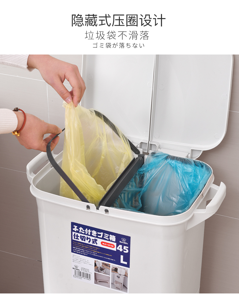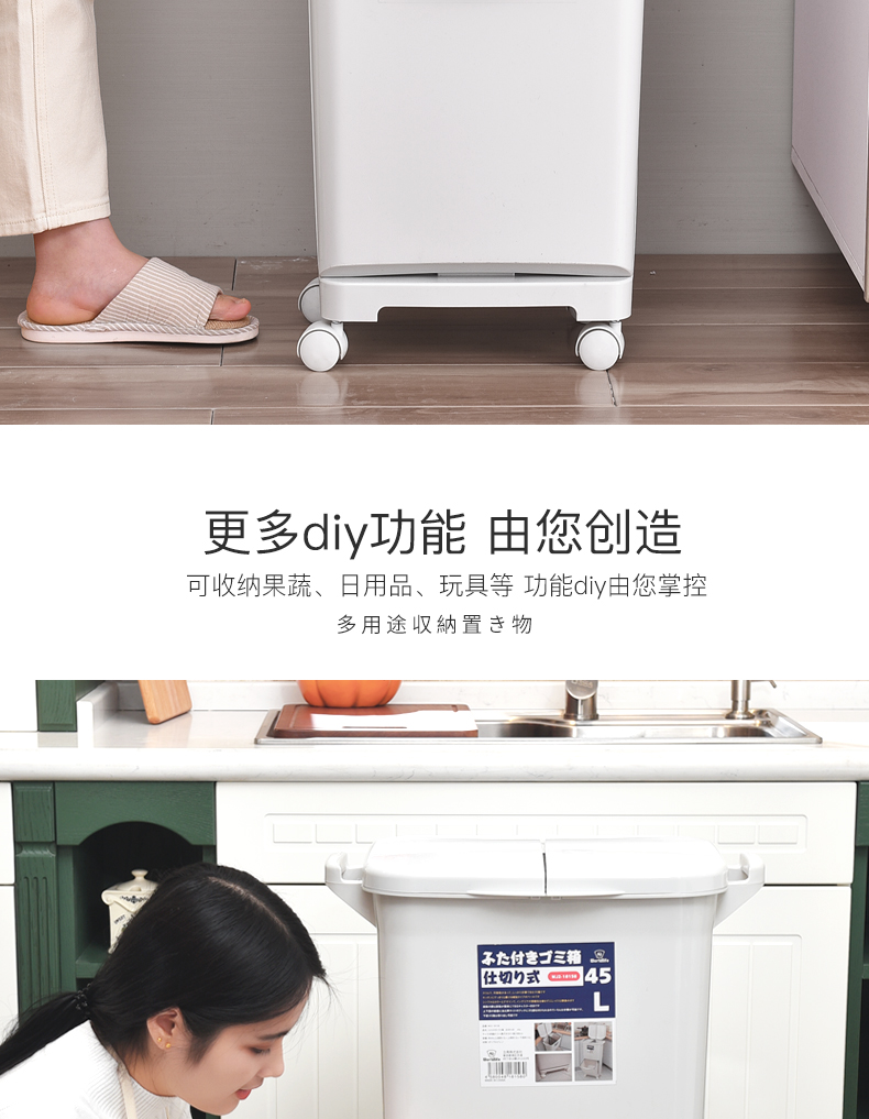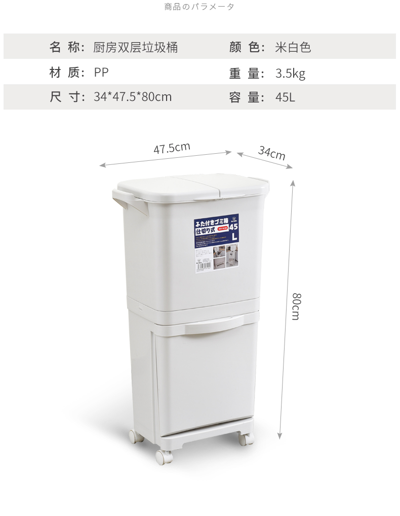 商品名称:国产 日式垃圾桶家用厨房客厅创意卧室大号双层分类带盖可移动大垃圾箱2398