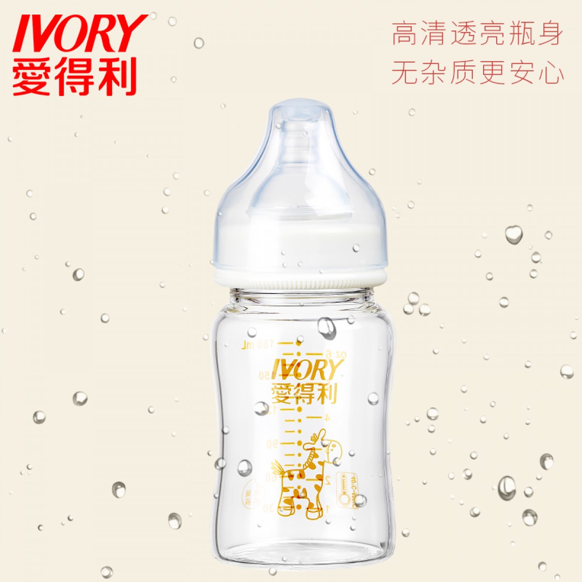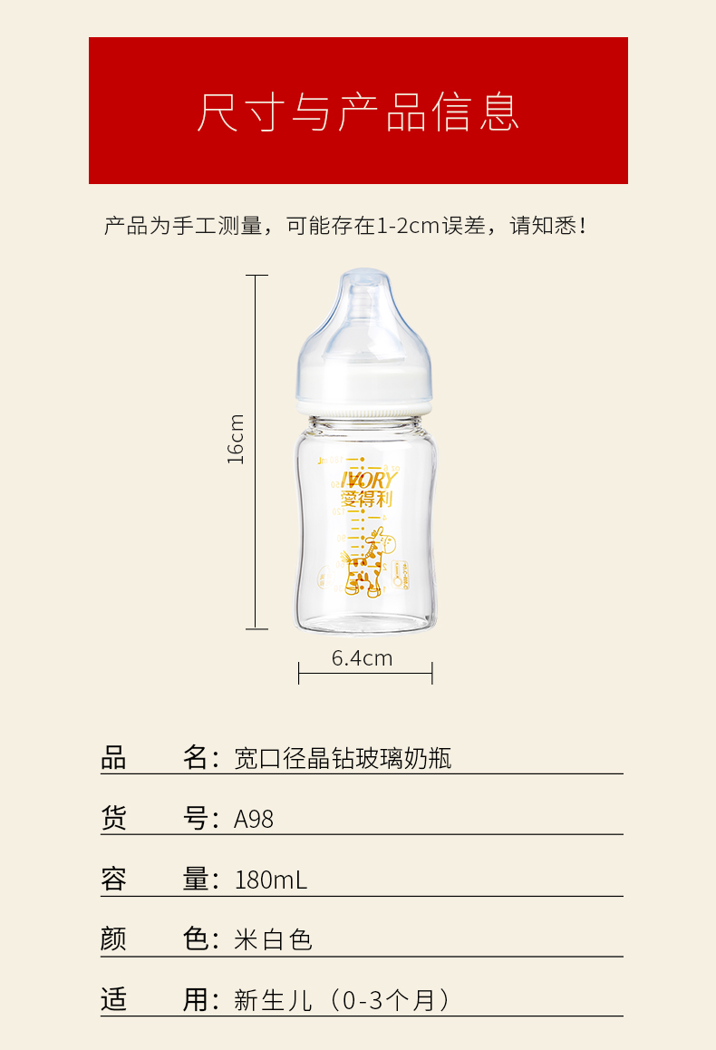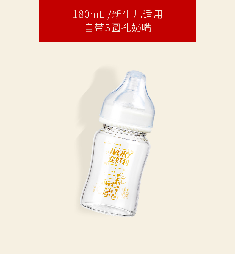 商品名称:爱得利 玻璃奶瓶婴儿宽口径晶钻新生儿奶瓶大宝宝奶瓶180/300mL