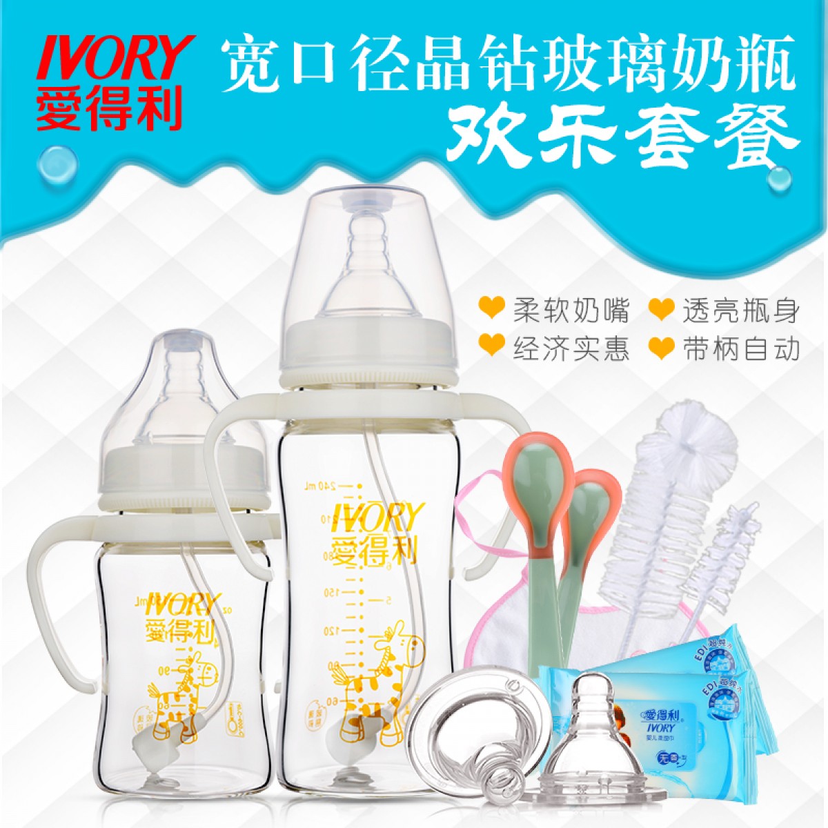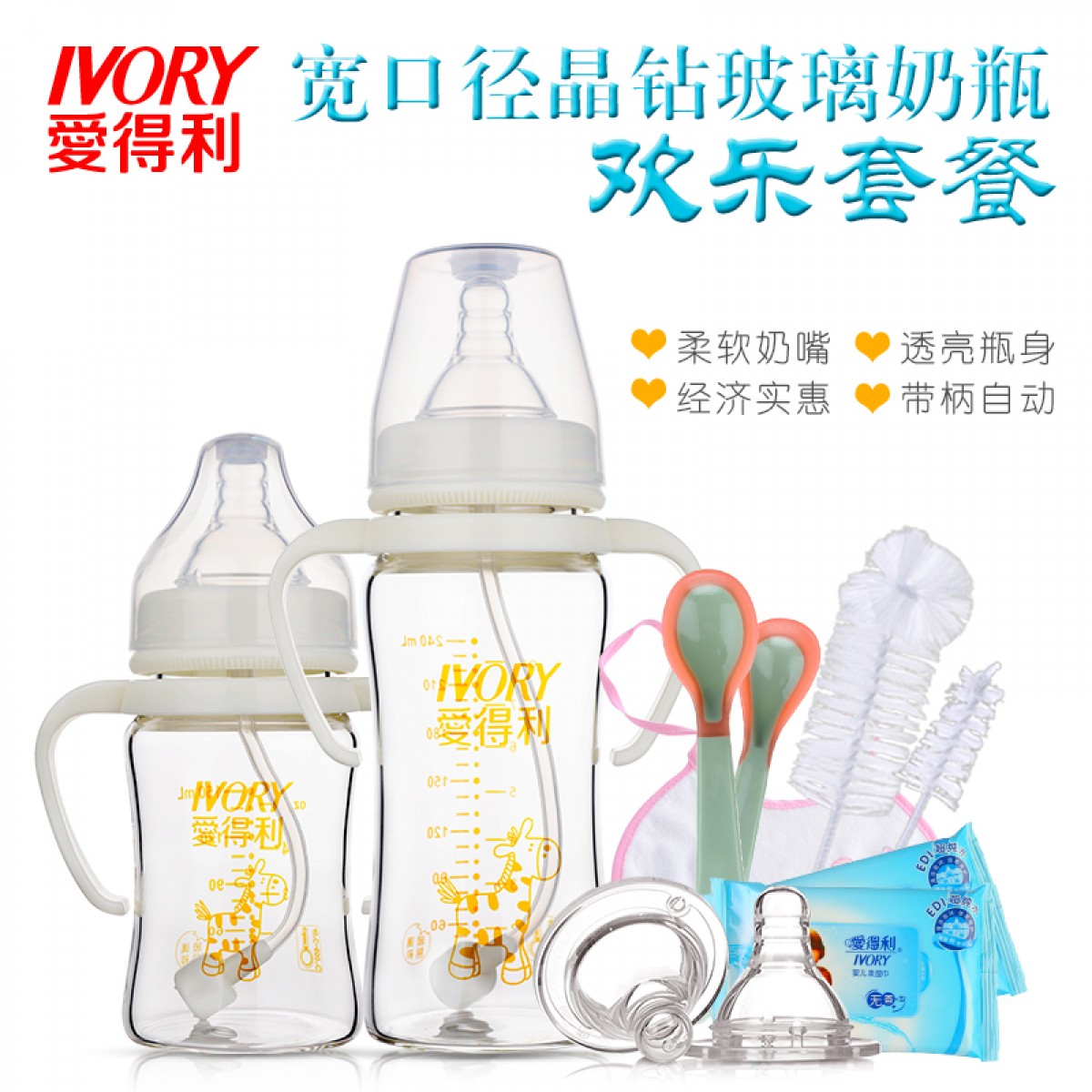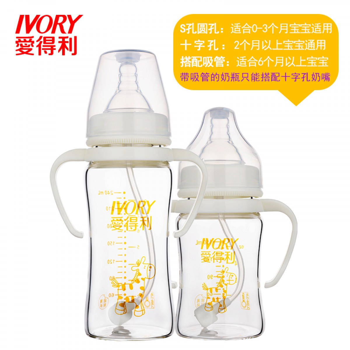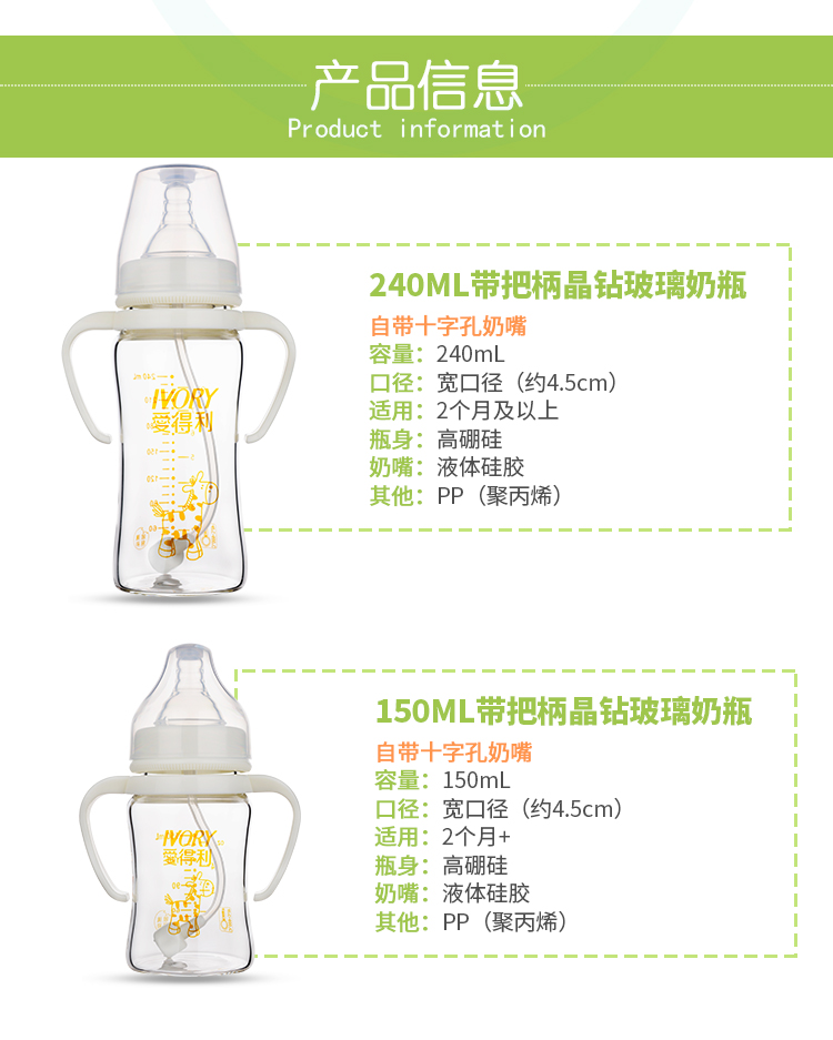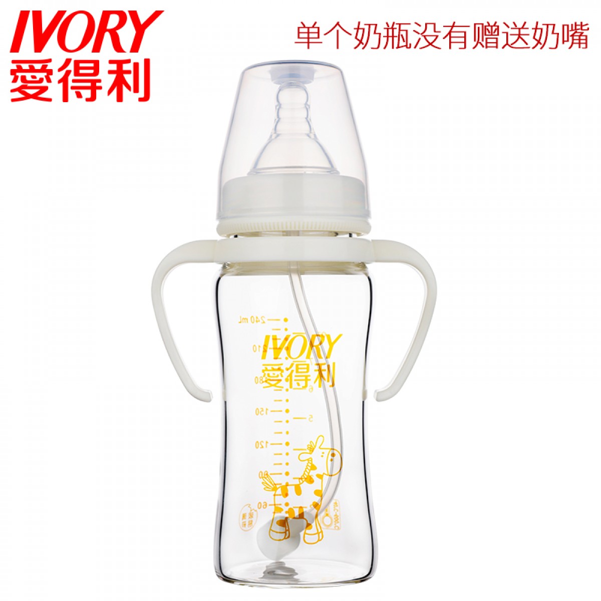 商品名称:爱得利 奶瓶玻璃宝宝带柄晶钻新生儿奶瓶宽口径吸管自动150/240mL