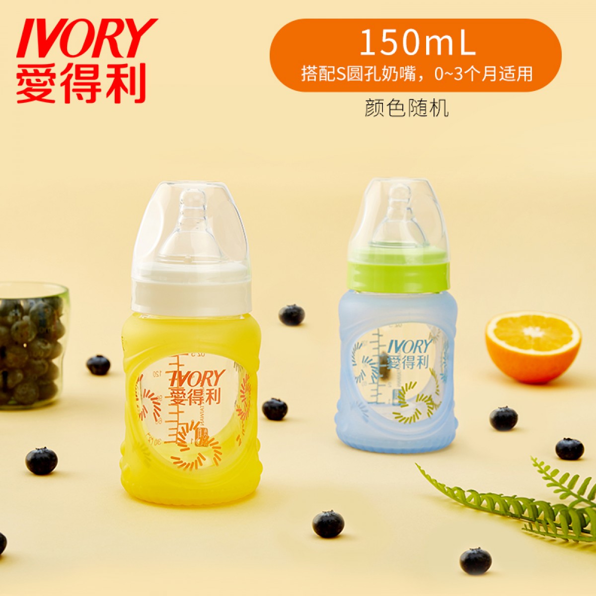 商品名称:爱得利 玻璃奶瓶带硅胶保护套宽口径防摔新生儿宝宝奶瓶150/260mL