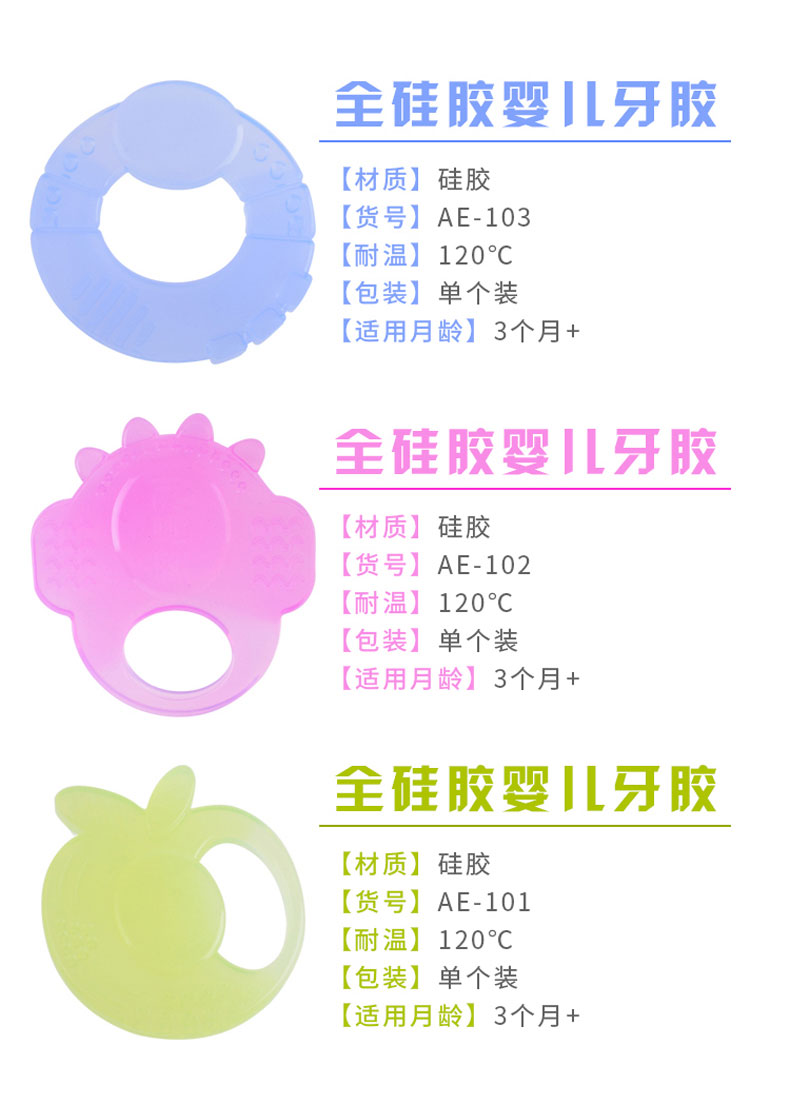 商品名称:爱得利 全硅胶婴儿牙胶咬牙磨牙训练器AE-103