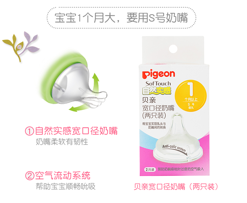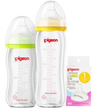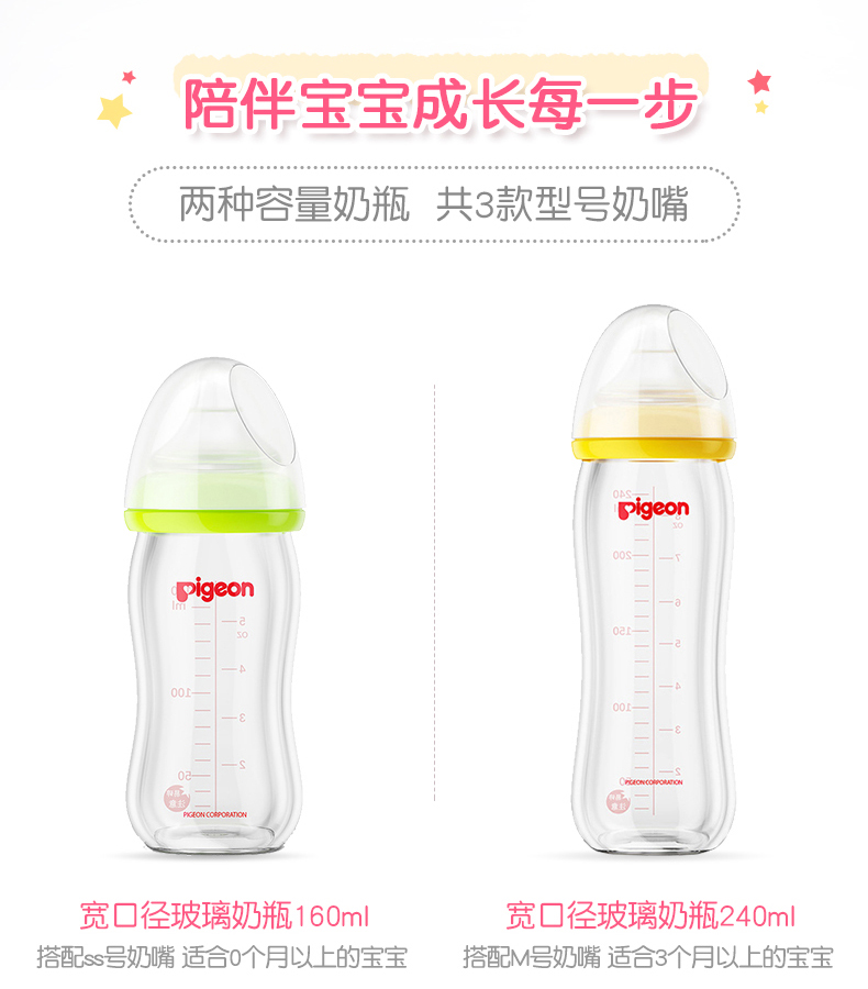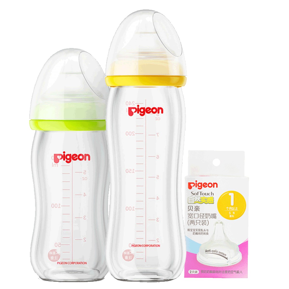 贝亲 玻璃宽口径新生婴儿奶瓶 自然实感S号奶嘴
