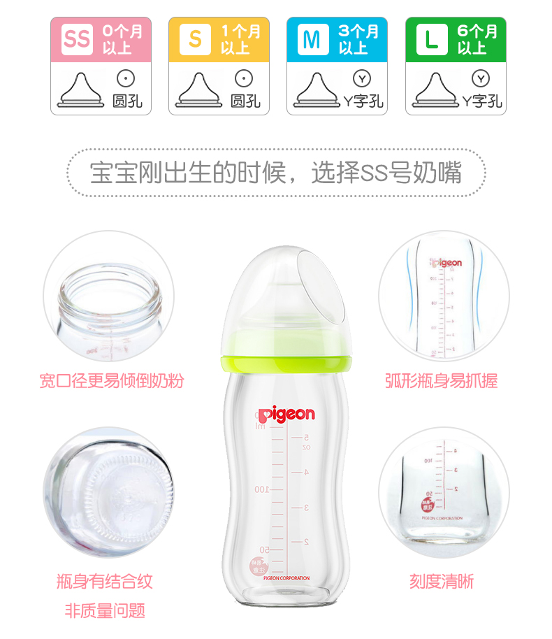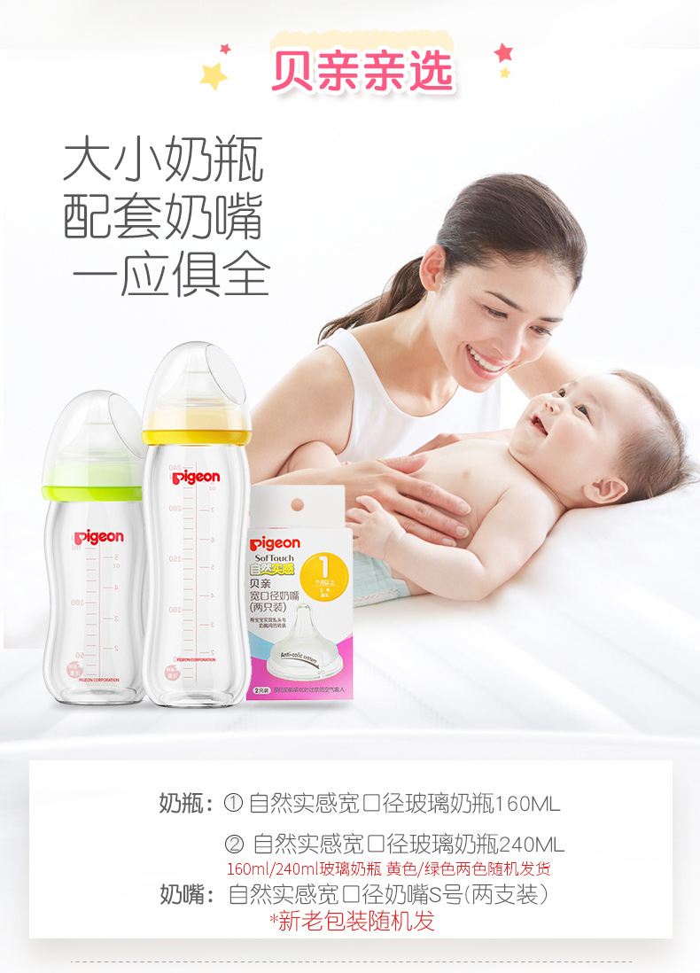 商品名称:贝亲 玻璃宽口径新生婴儿奶瓶 自然实感S号奶嘴
