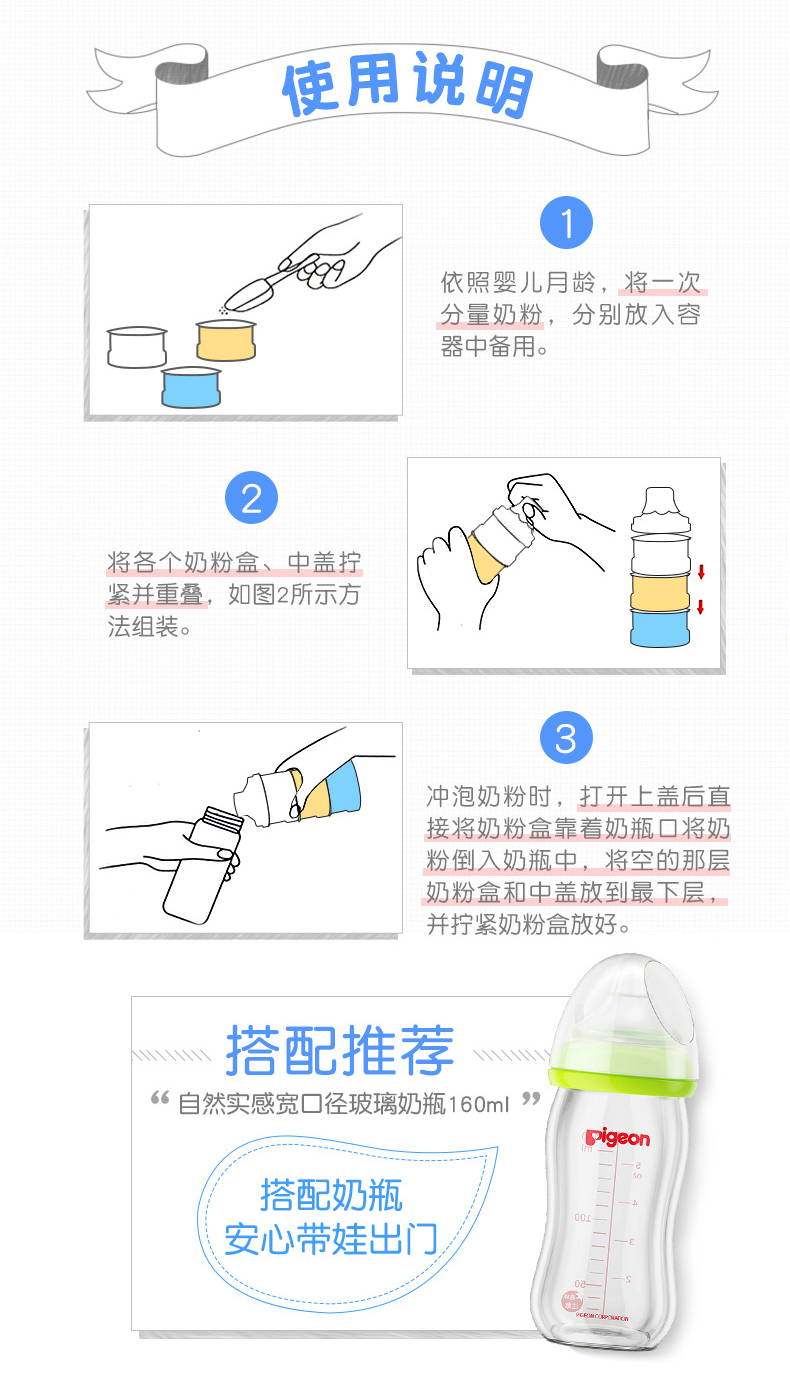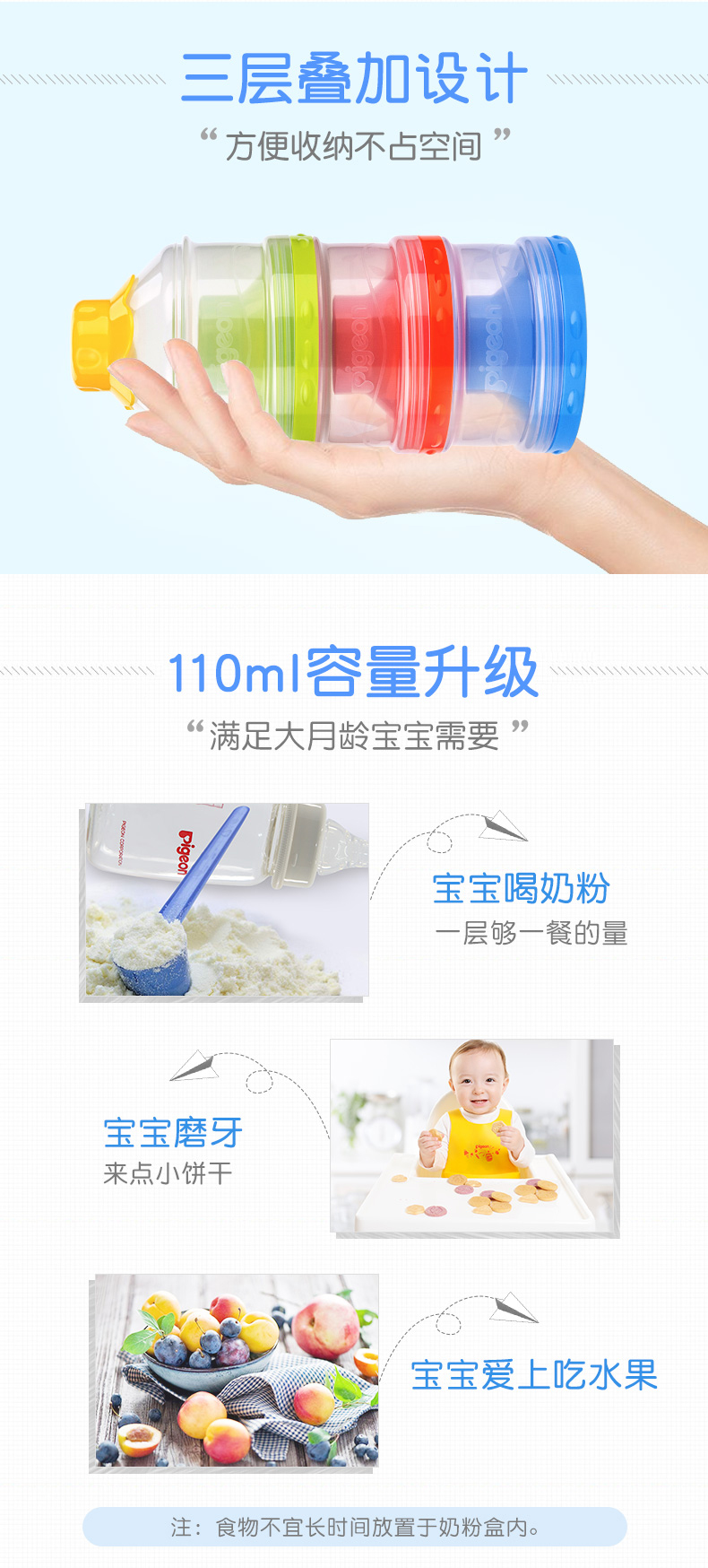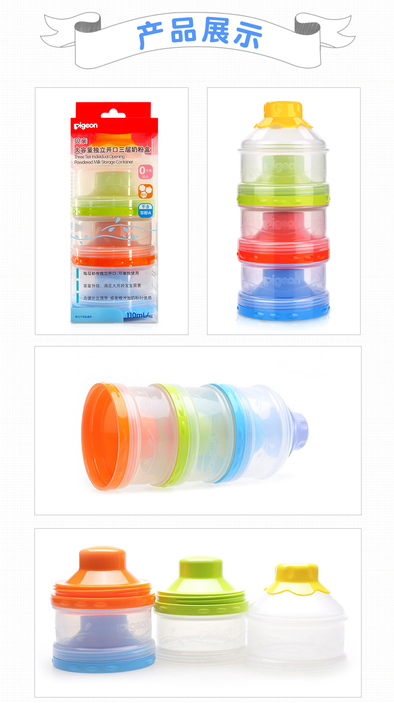 商品名称:贝亲 大容量独立开口三层奶粉盒便携外出分盒装宝宝奶粉储存盒CA07