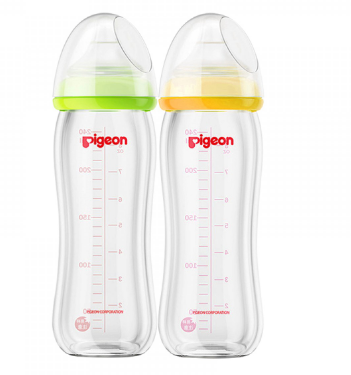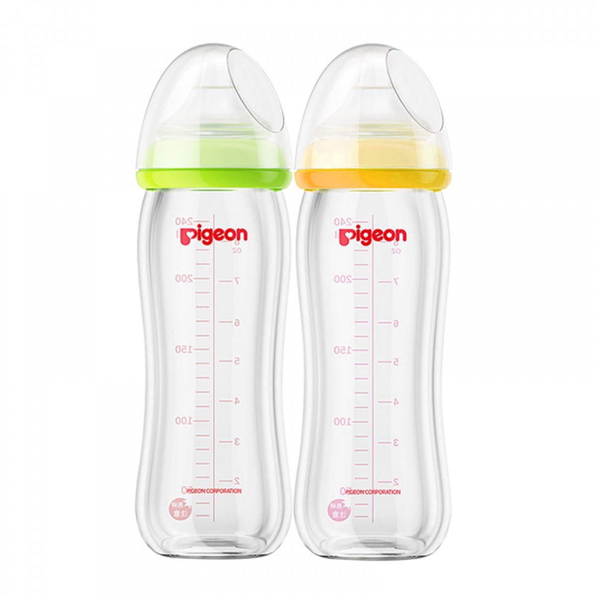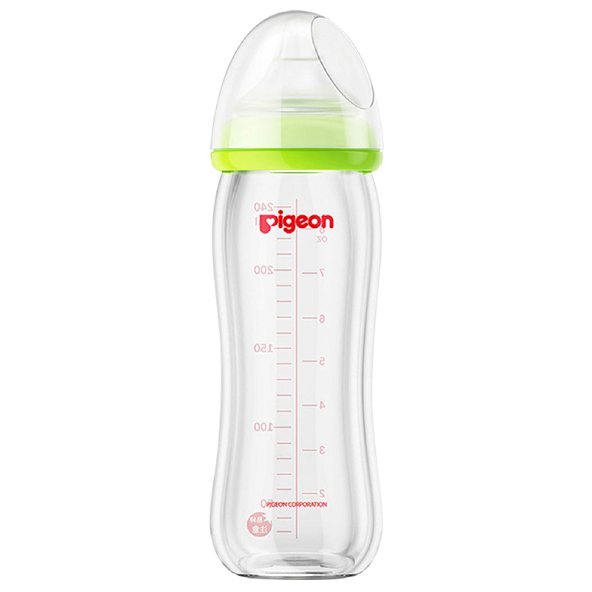 贝亲 M号奶嘴奶瓶宽口径玻璃自然实感240ml 黄AA71/绿AA70