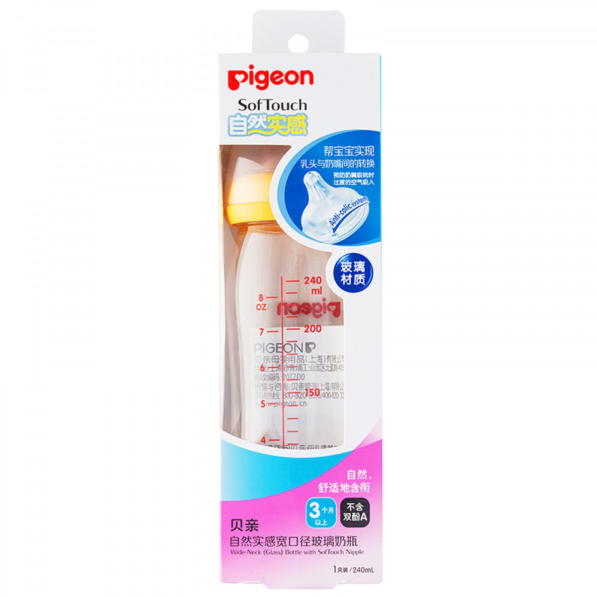 商品名称:贝亲 M号奶嘴奶瓶宽口径玻璃自然实感240ml 黄AA71/绿AA70