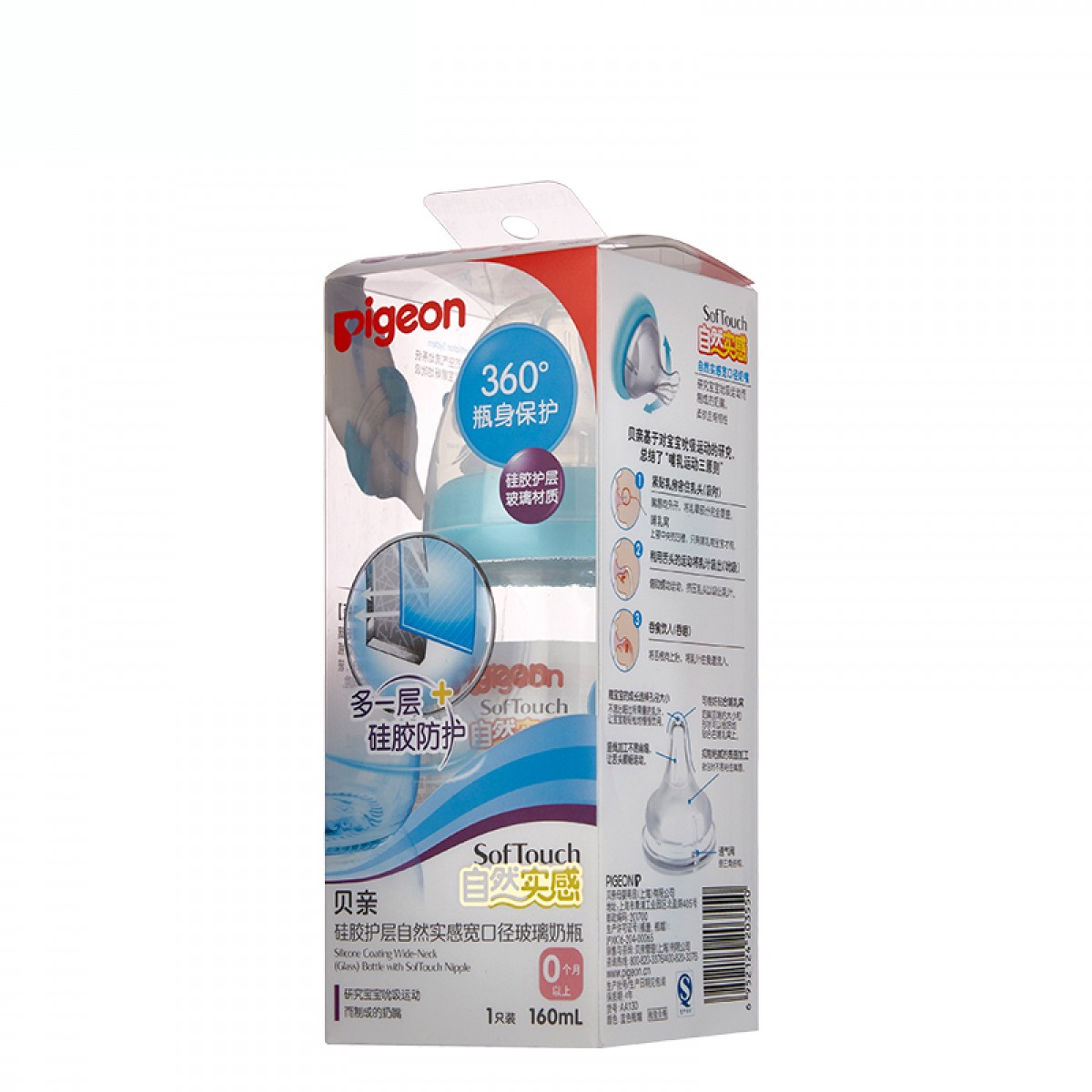 贝亲 奶瓶 玻璃新生儿初生婴儿宽口径硅胶护层 配SS奶嘴 AA130