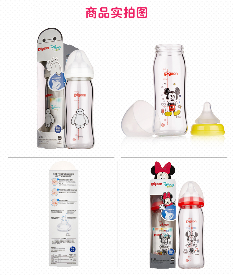 商品名称:贝亲 宽口径玻璃迪士尼婴儿奶瓶240ml 配L号奶嘴
