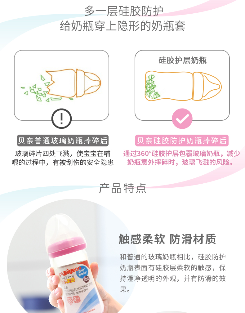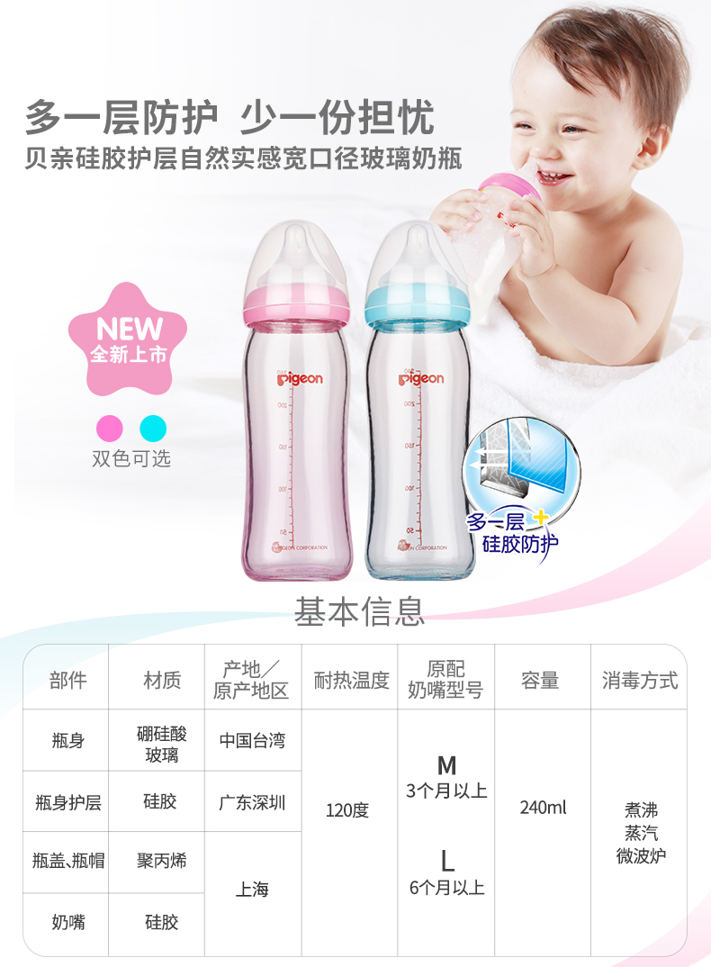 商品名称:贝亲 硅胶护层宽口径玻璃奶瓶240ml配M/L号奶嘴