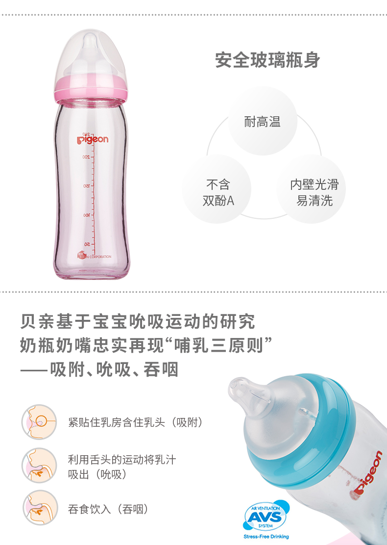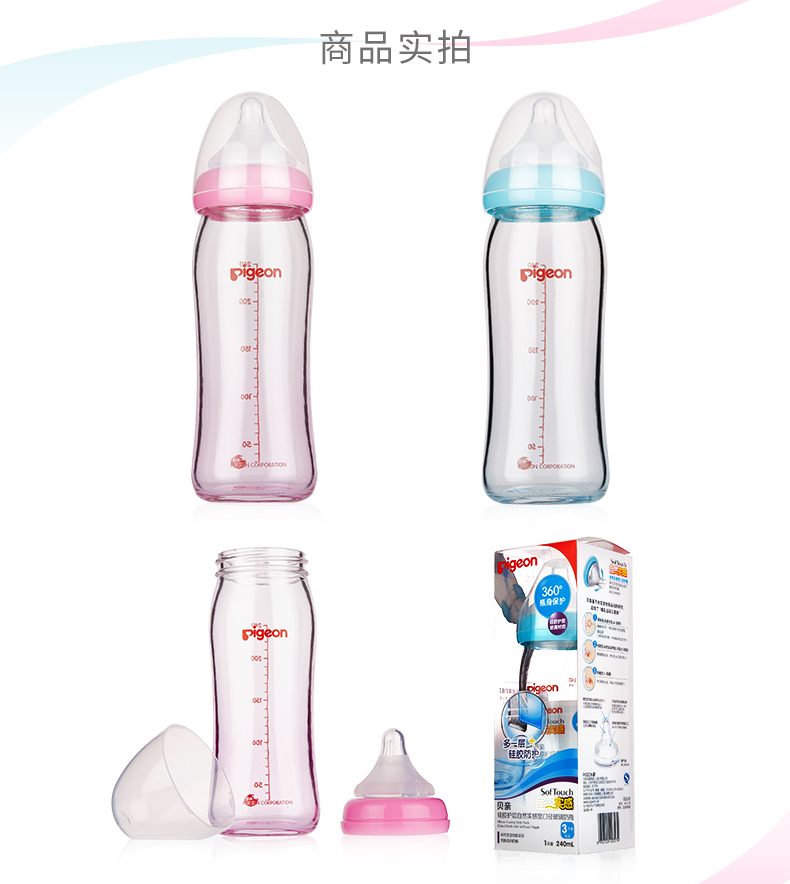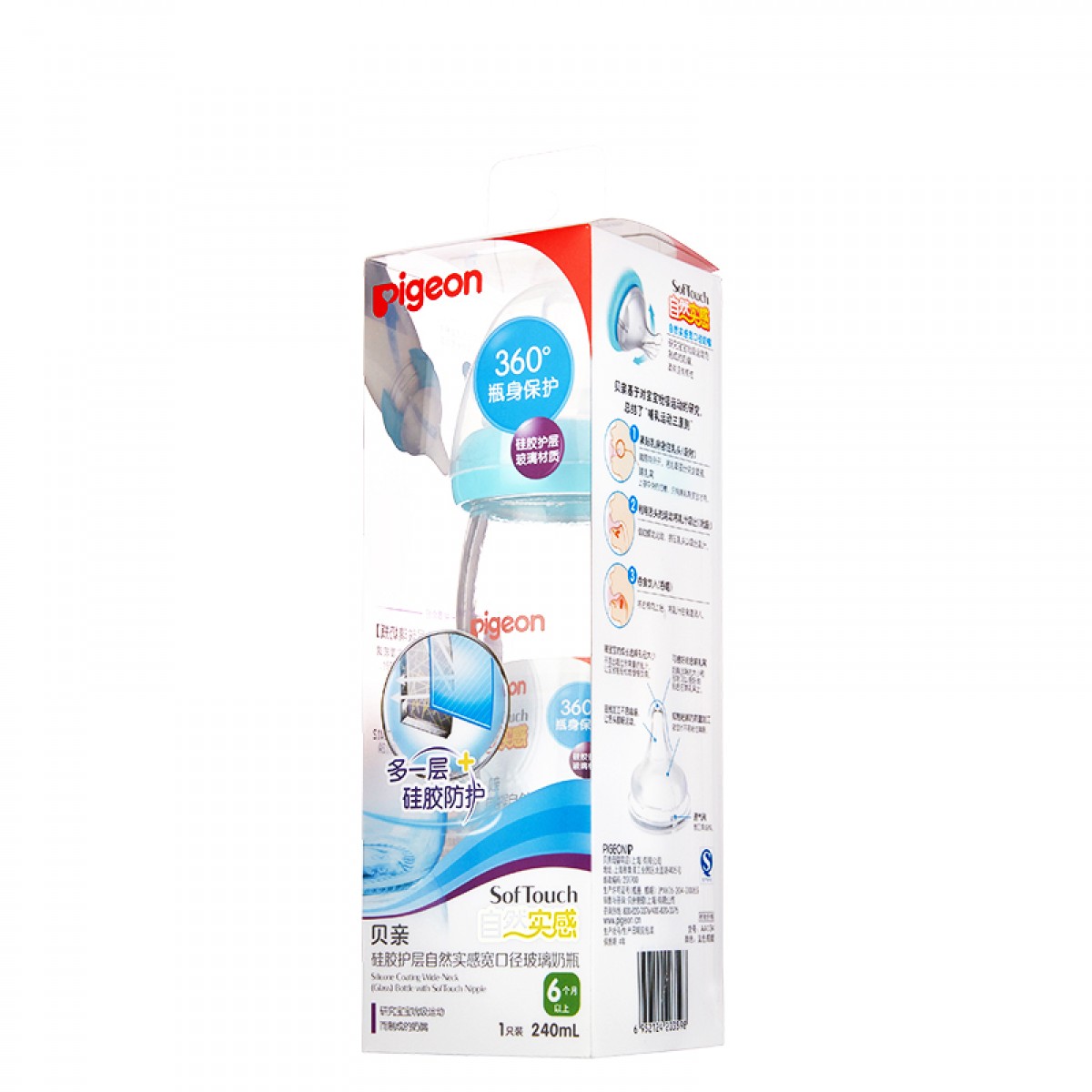 贝亲 硅胶护层宽口径玻璃奶瓶240ml配M/L号奶嘴