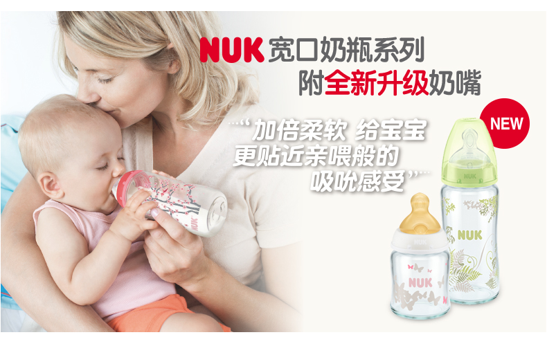 NUK 玻璃奶瓶NUK新生儿宽口奶瓶240ML带乳胶1号奶嘴