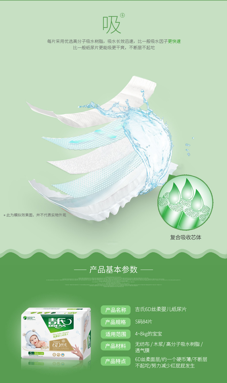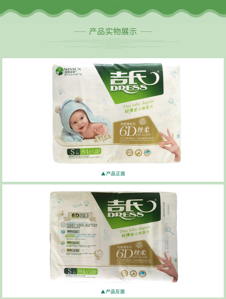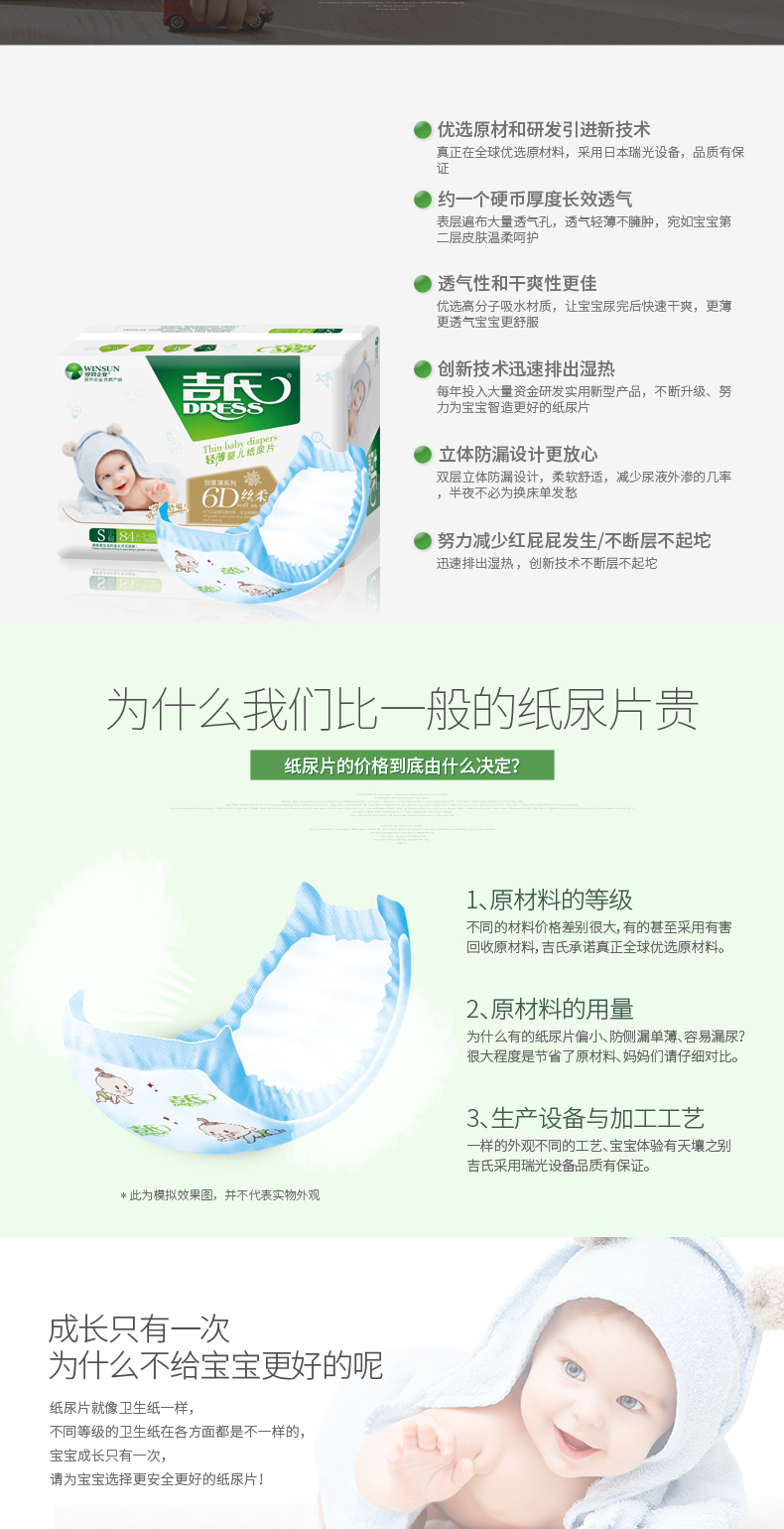商品名称:吉氏 6D丝柔婴儿纸尿片S84新生儿初生宝宝尿片轻薄小号干爽尿不湿S