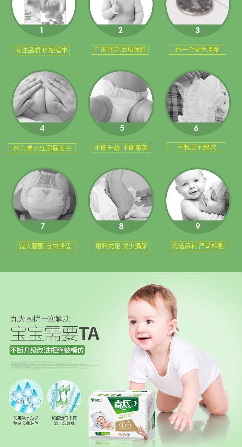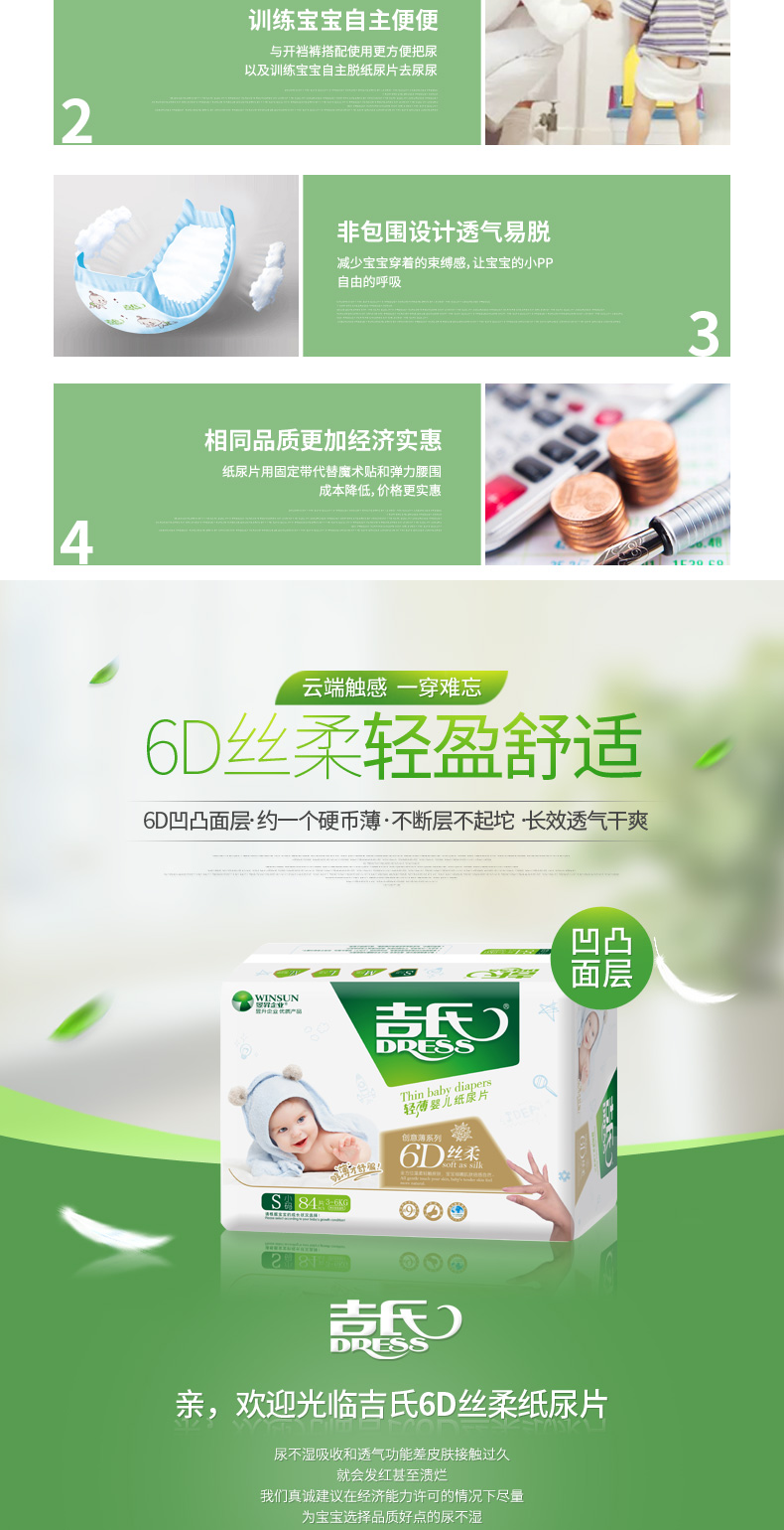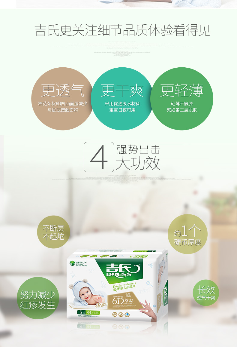 商品名称:吉氏 6D丝柔婴儿纸尿片S84新生儿初生宝宝尿片轻薄小号干爽尿不湿S