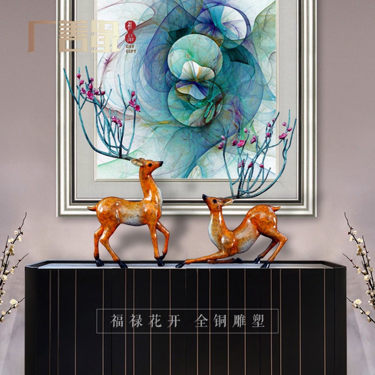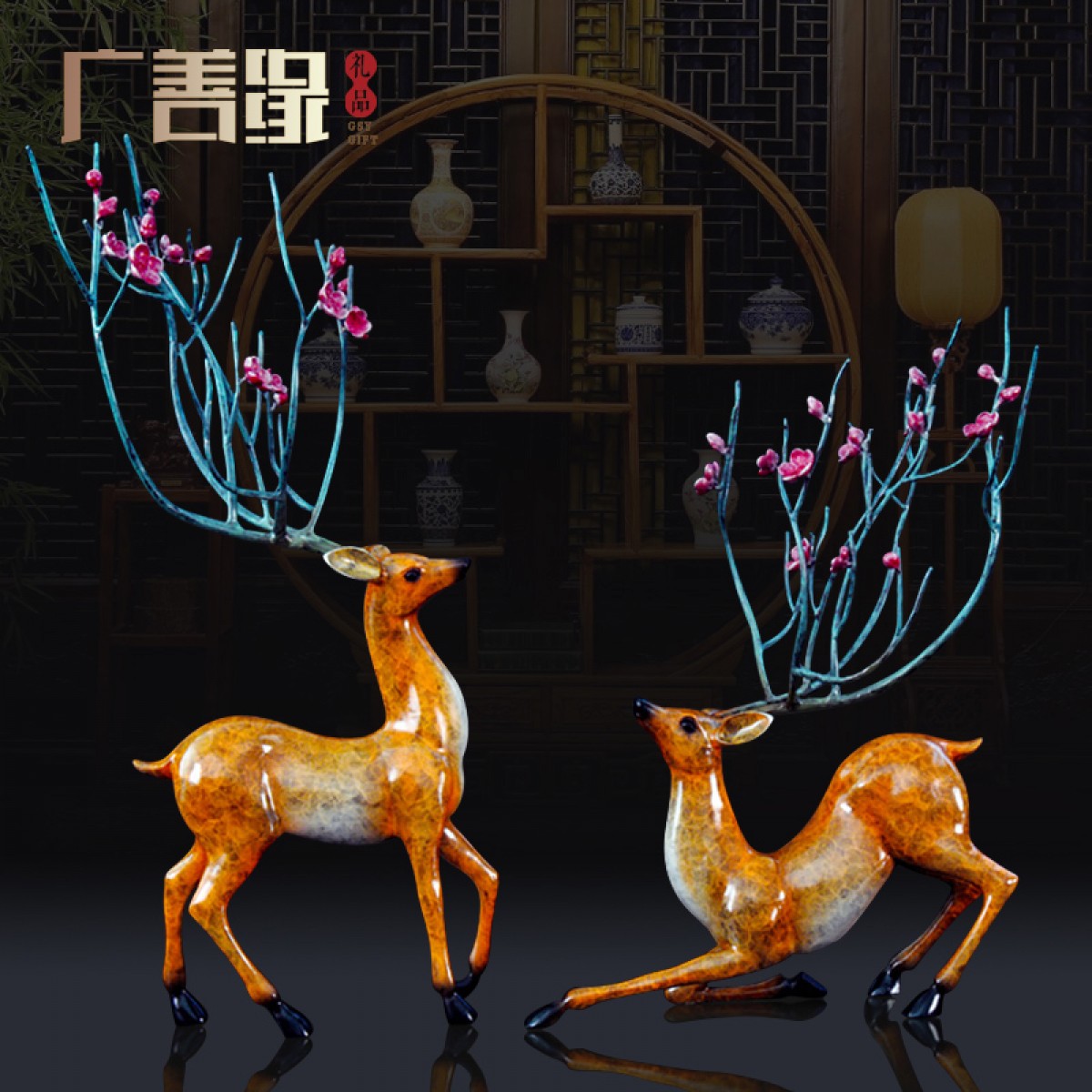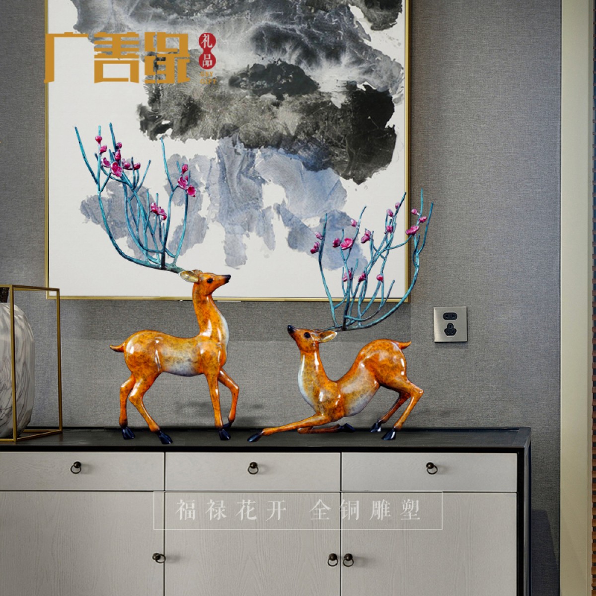 国产 铜鹿摆件客厅家居装饰会所酒店办公室乔迁开业礼品纯铜梅花鹿摆件