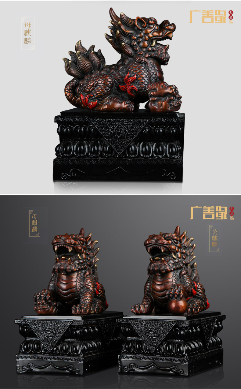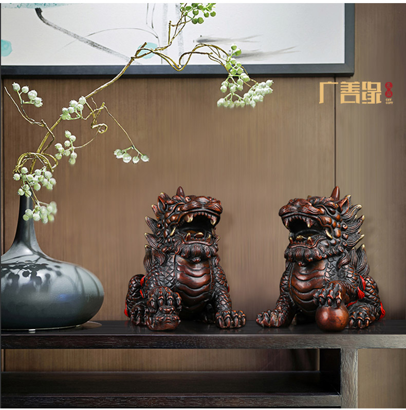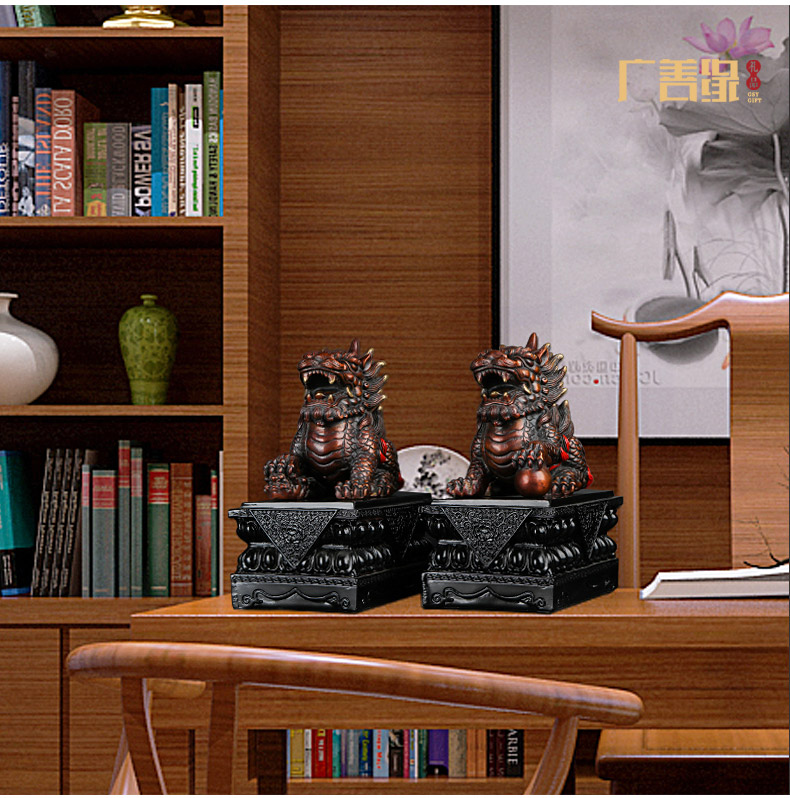 国产 铜麒麟摆件一对纯铜招财镇宅开光办公室客厅家居饰品风水麒麟摆件