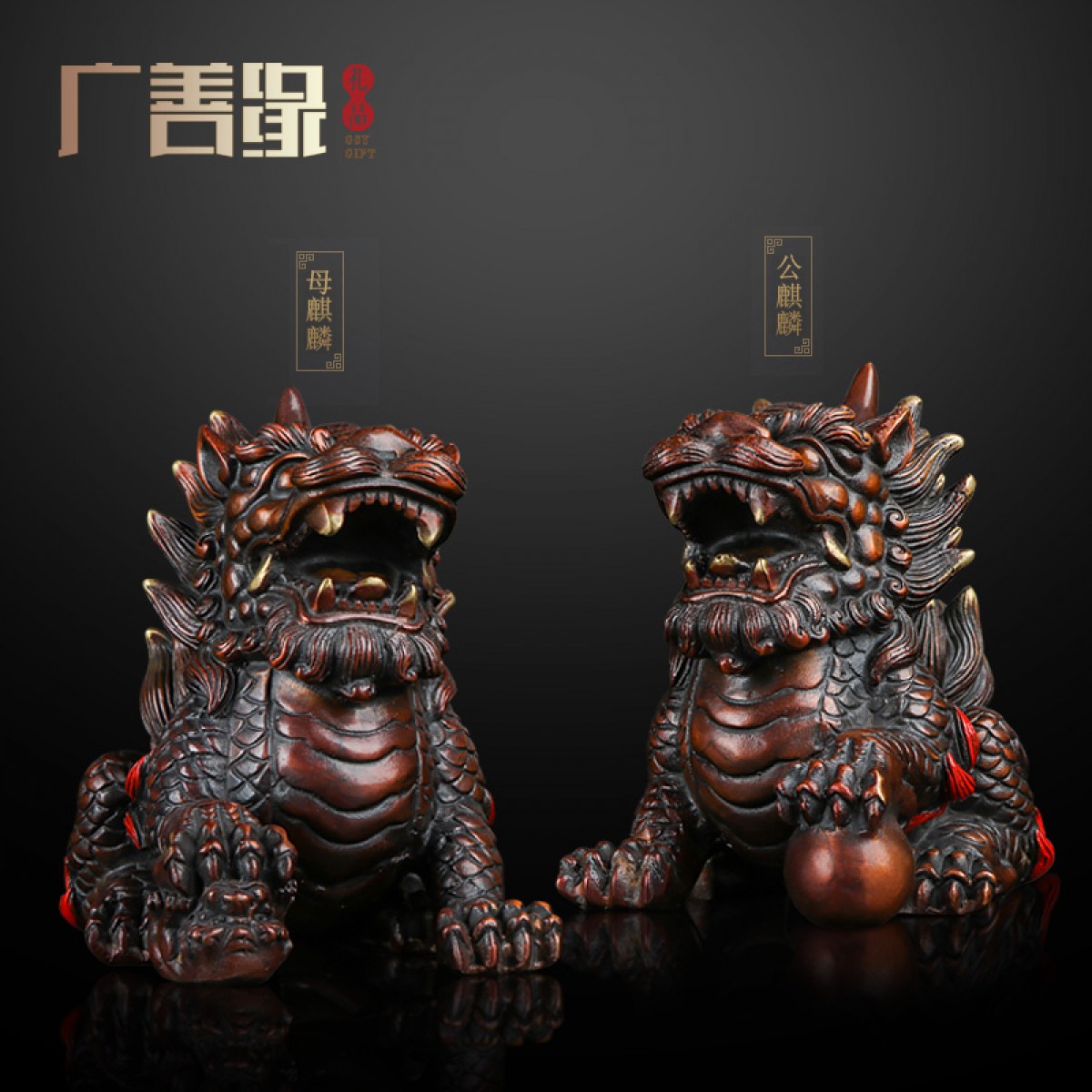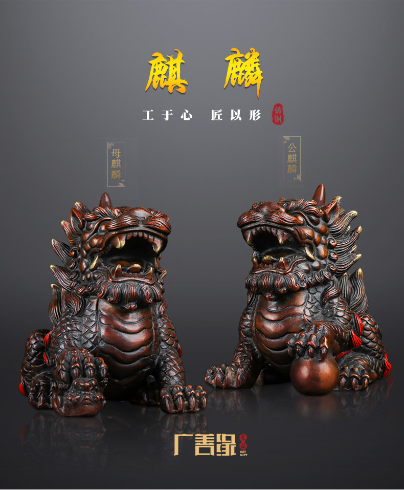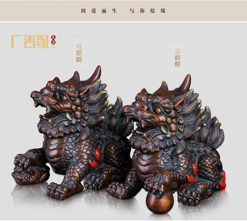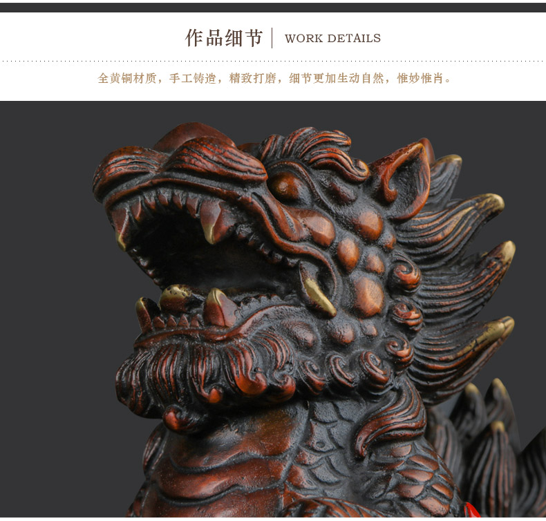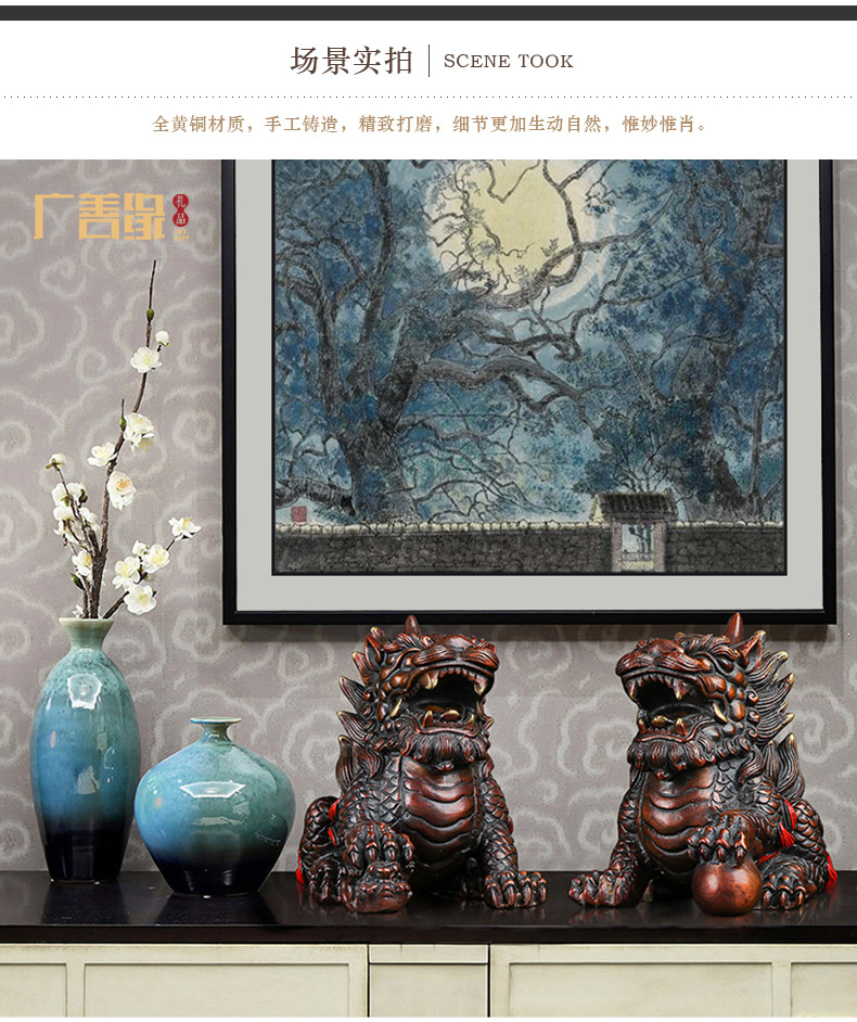 商品名称:国产 铜麒麟摆件一对纯铜招财镇宅开光办公室客厅家居饰品风水麒麟摆件