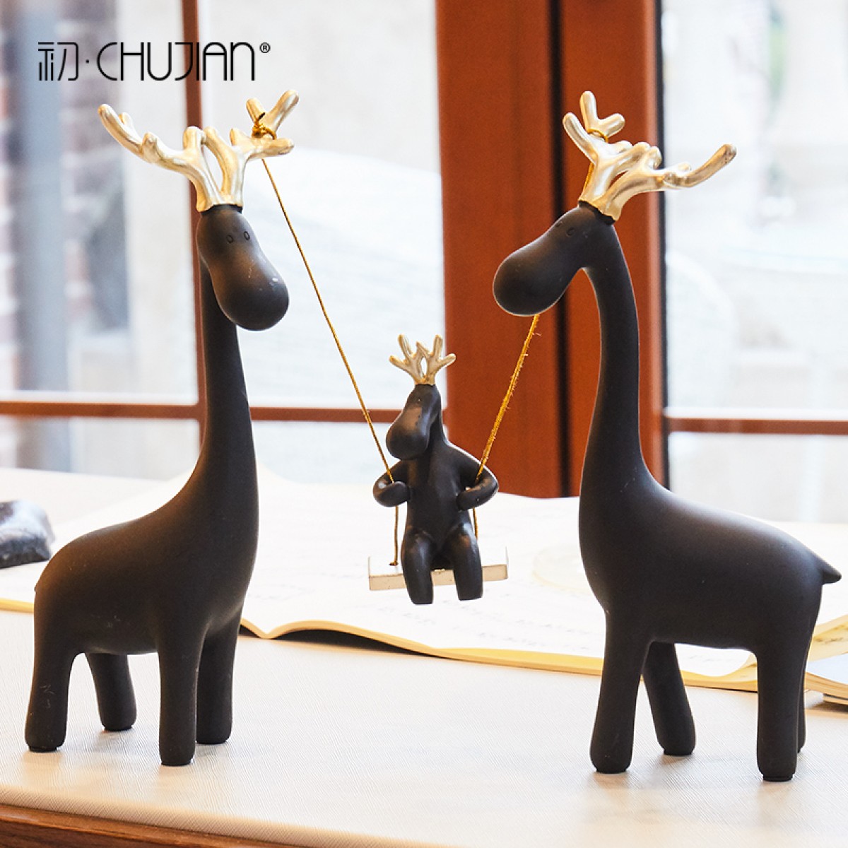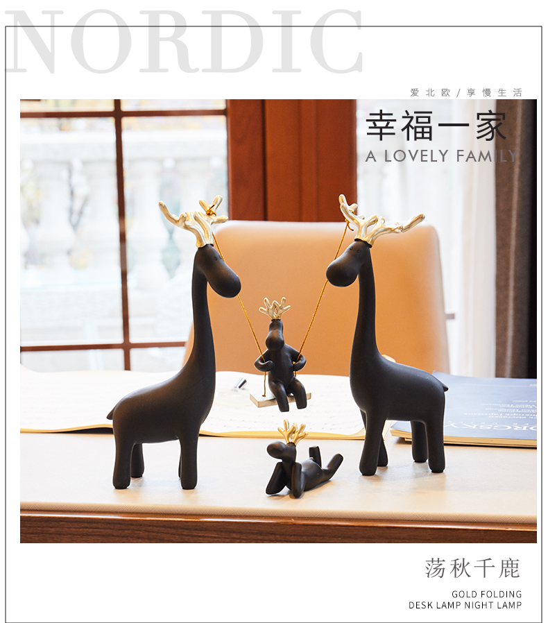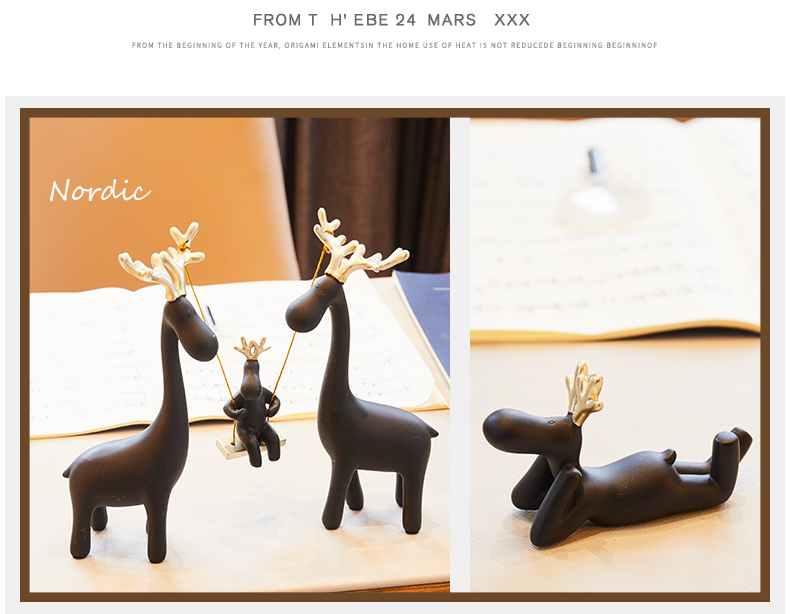 国产 美式麋鹿摆件创意软装简约酒柜北欧式风格家居装饰品客厅玄关室内