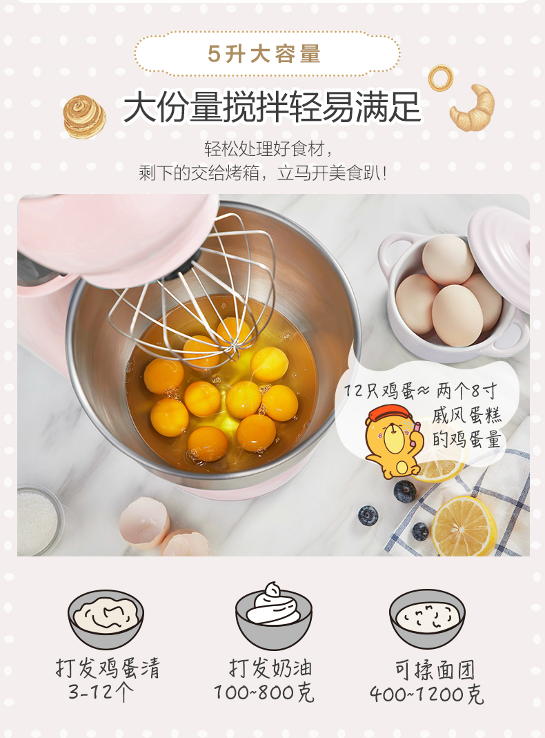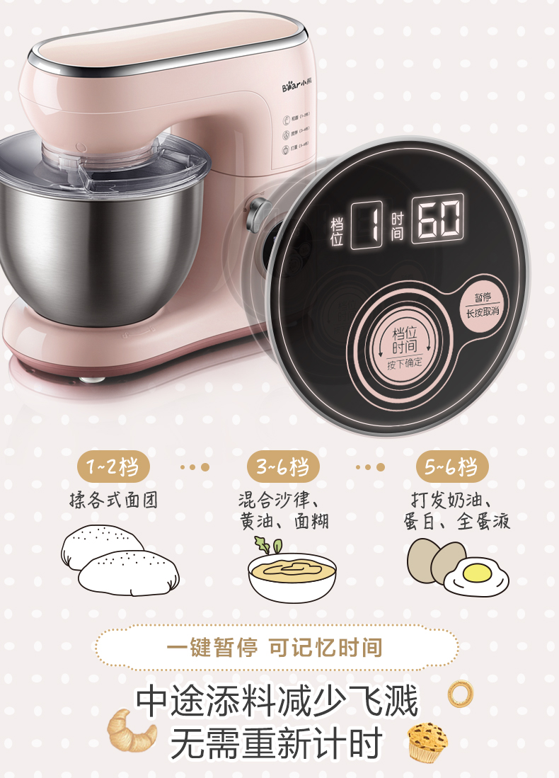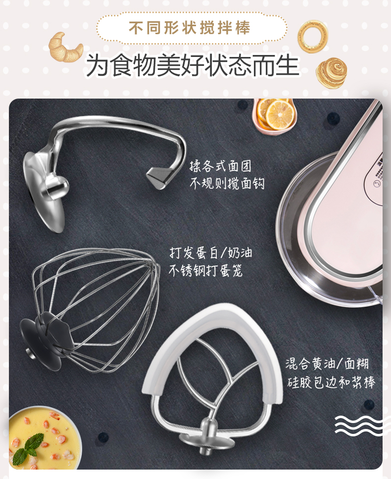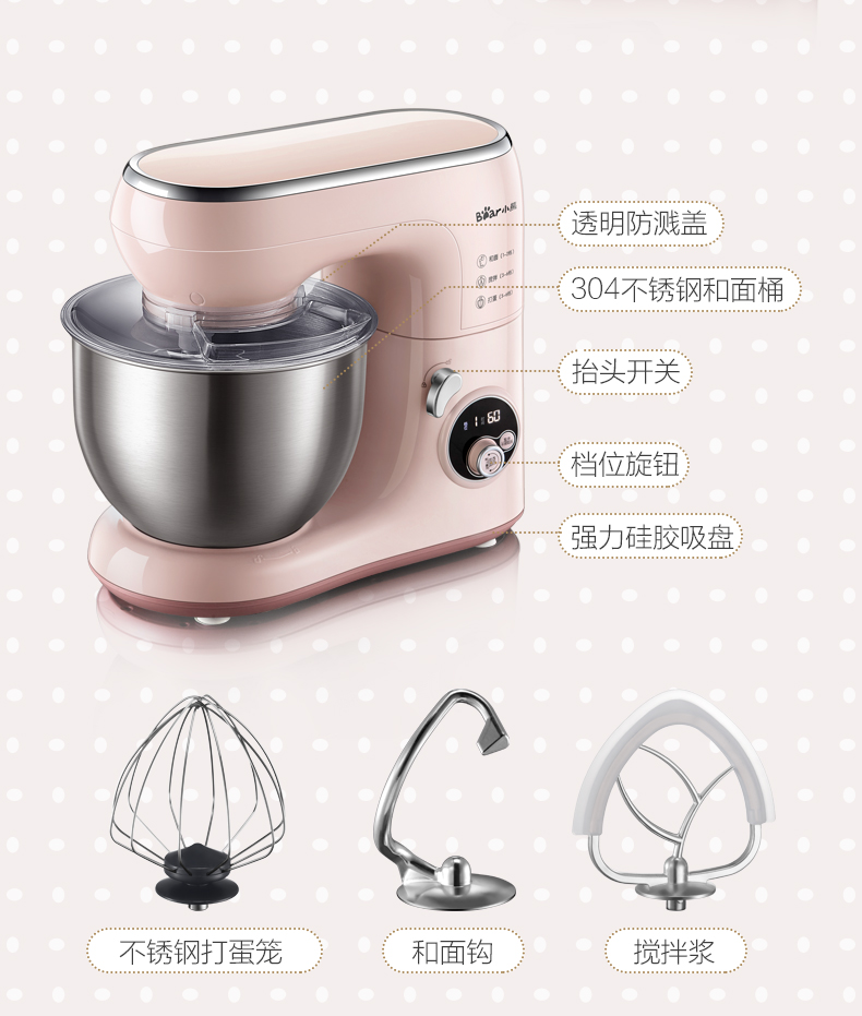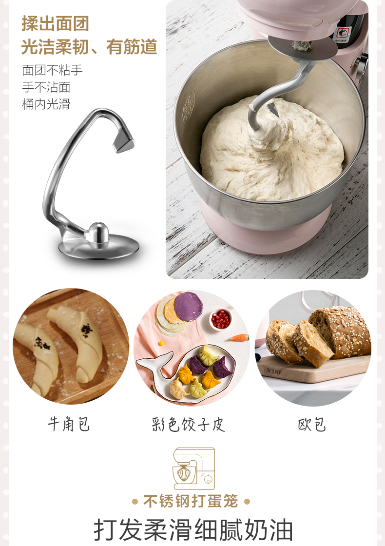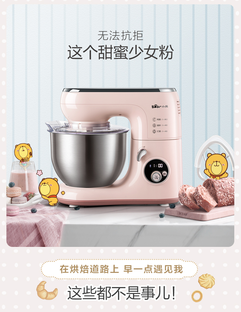 商品名称:小熊 厨师机家用小型和面机全自动揉面机电动搅拌机奶油打发打蛋器