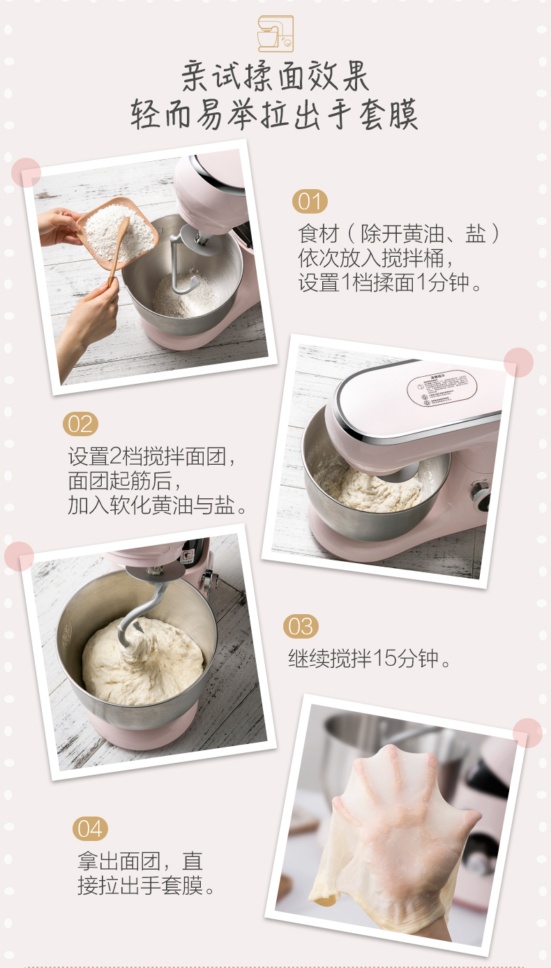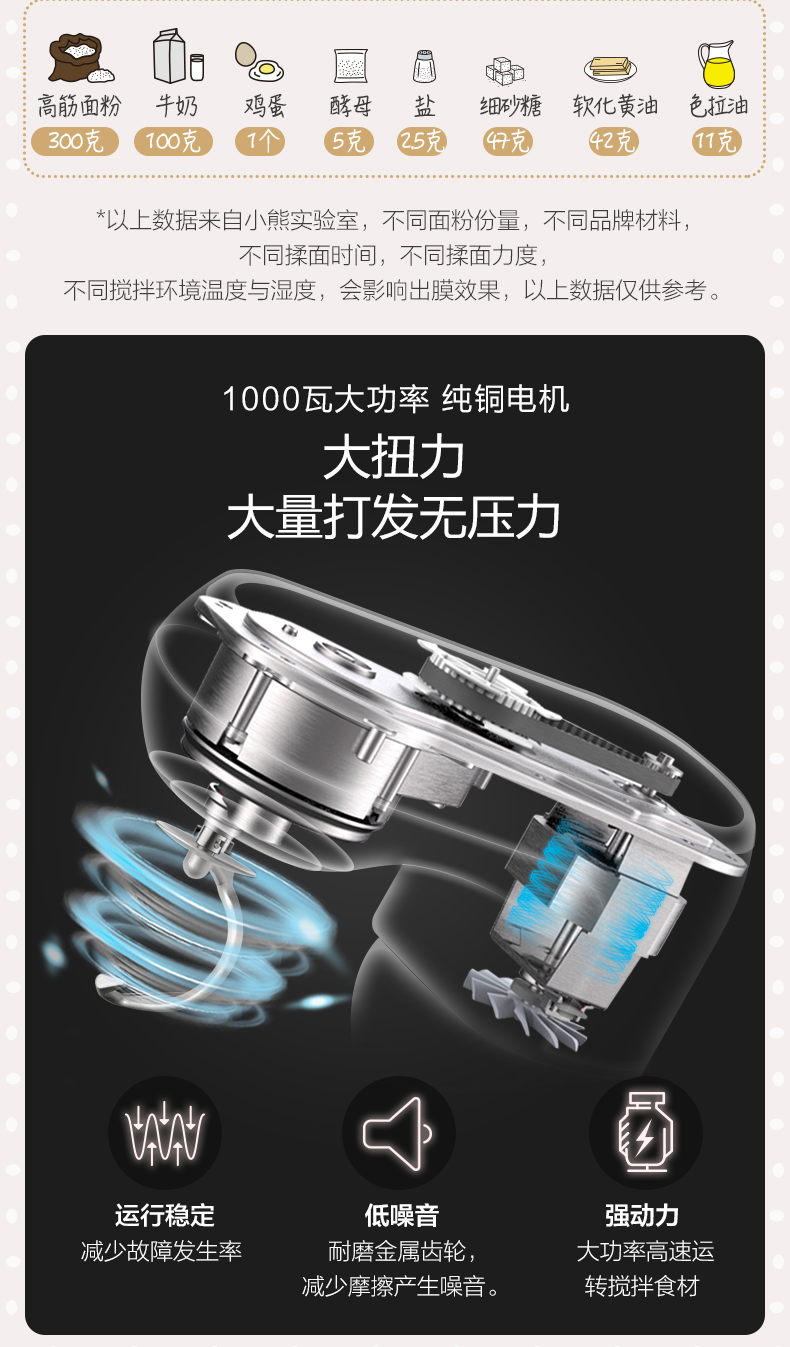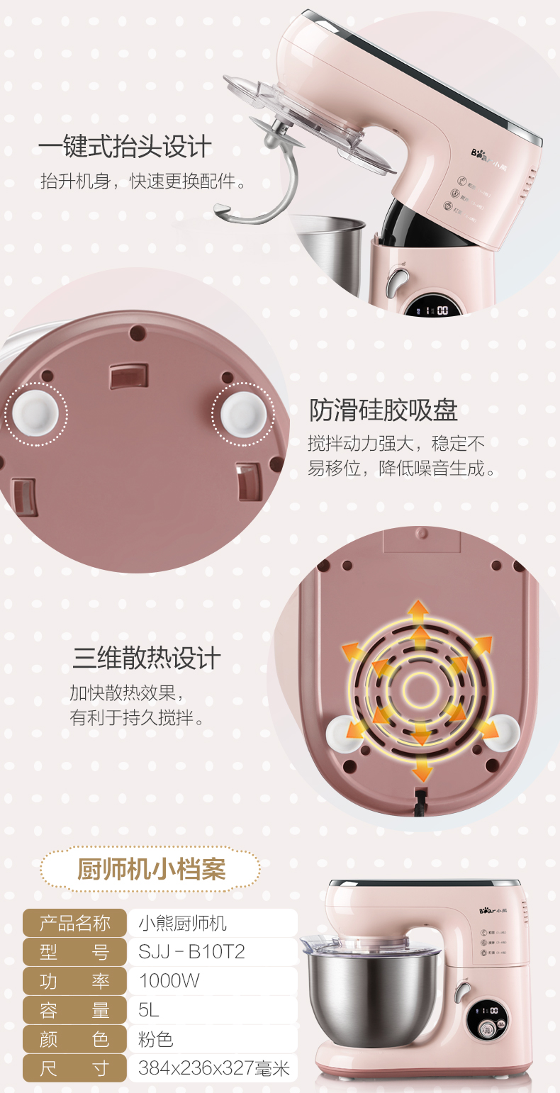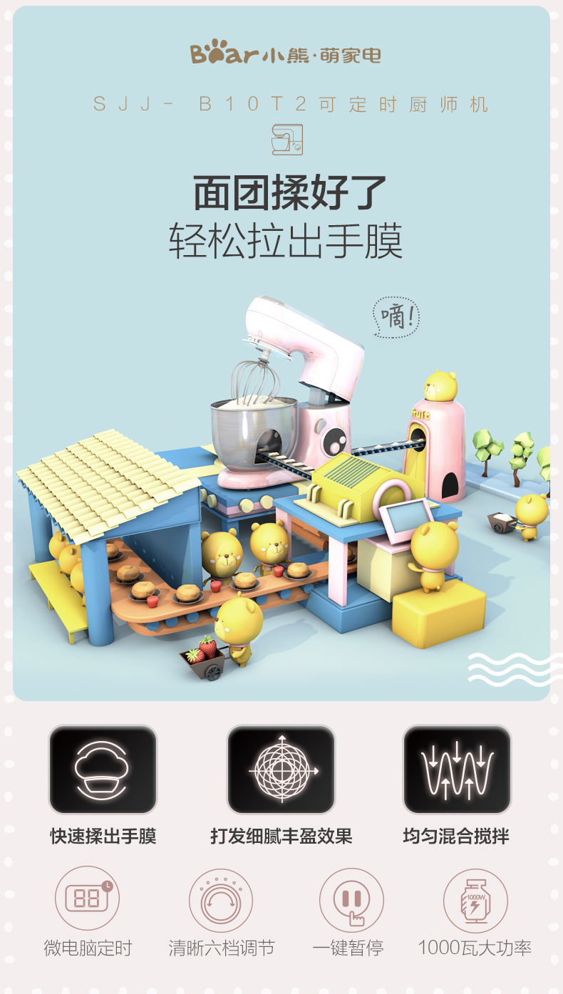 商品名称:小熊 厨师机家用小型和面机全自动揉面机电动搅拌机奶油打发打蛋器