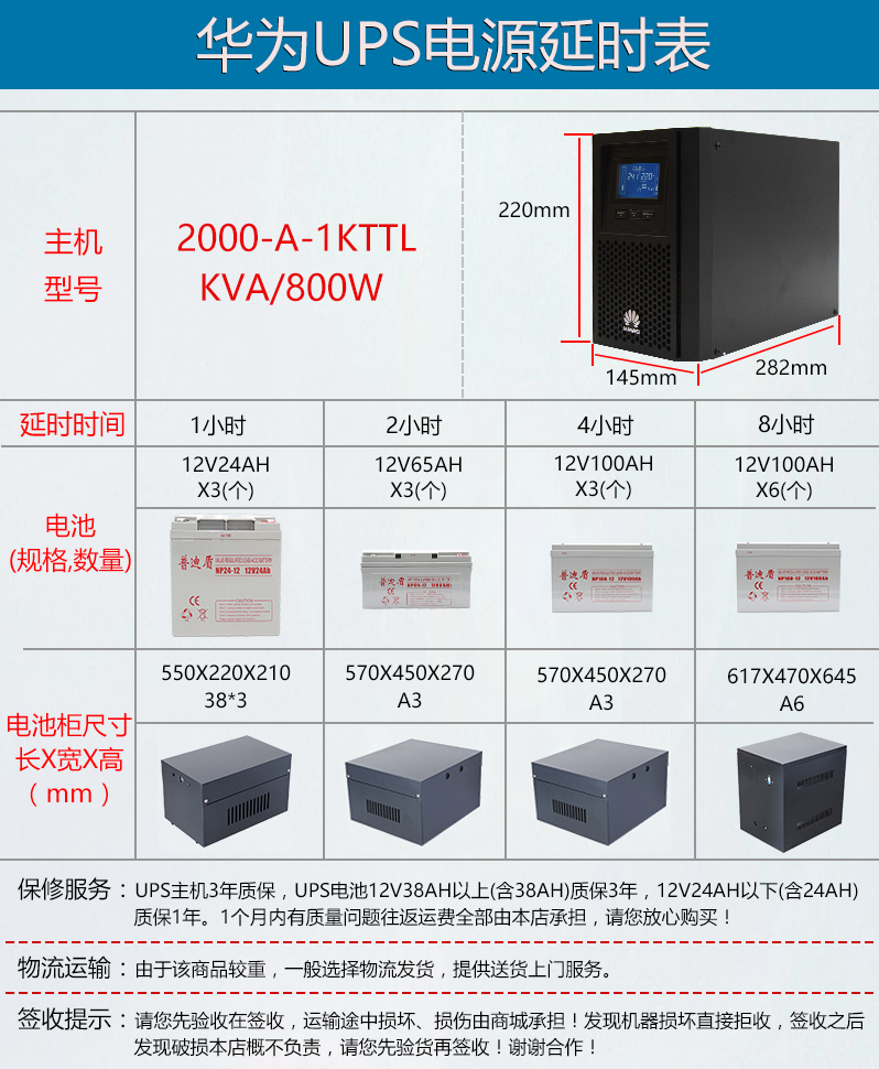 商品名称:华为 UPS不间断电源长延时主机 需搭配电池使用 2000-A-1KVA/800W