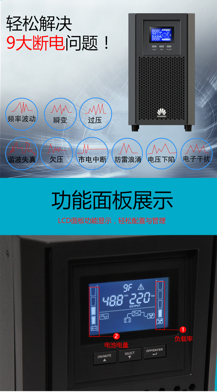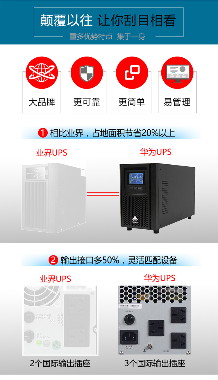 商品名称:华为 UPS不间断电源 延时1小时 含电池组 2000-A-1KTTL/800W