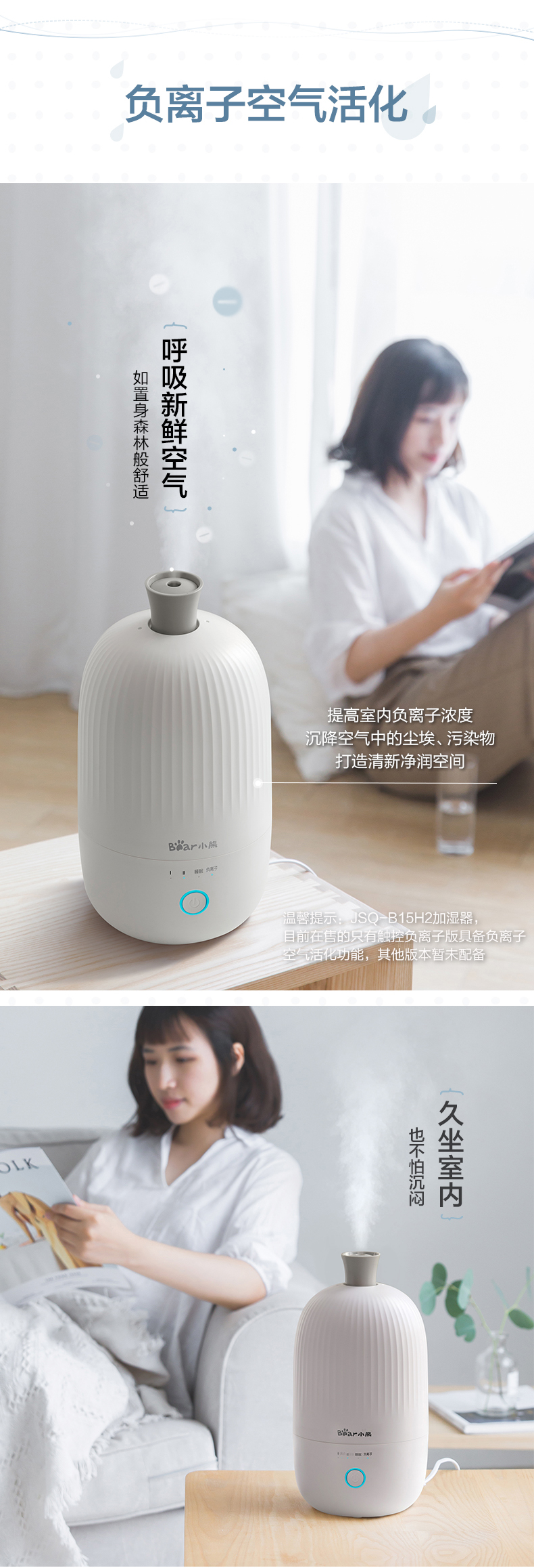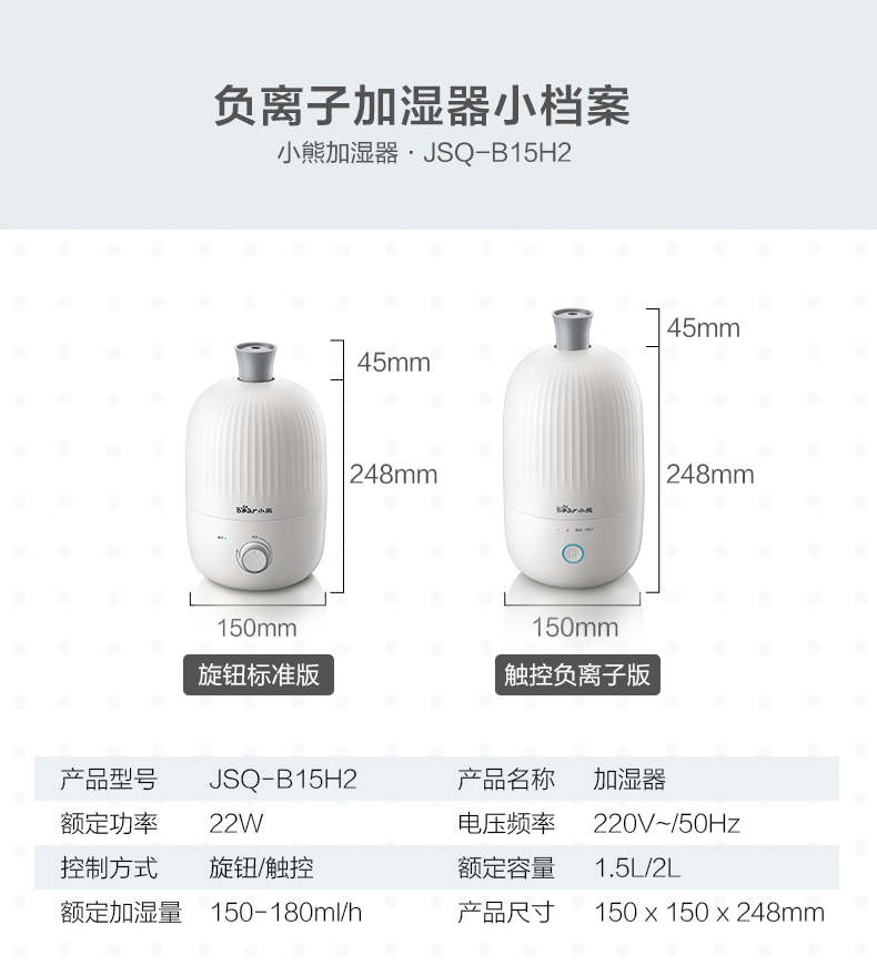 商品名称:小熊 迷你加湿器小型空气净化香薰机增湿器 JSQ-B15H2