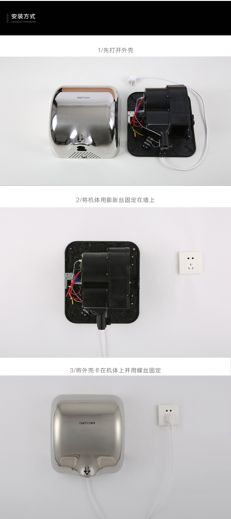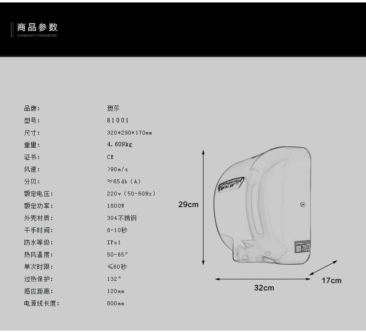 商品名称:澳莎 全自动感应吹手干手烘手器 81003
