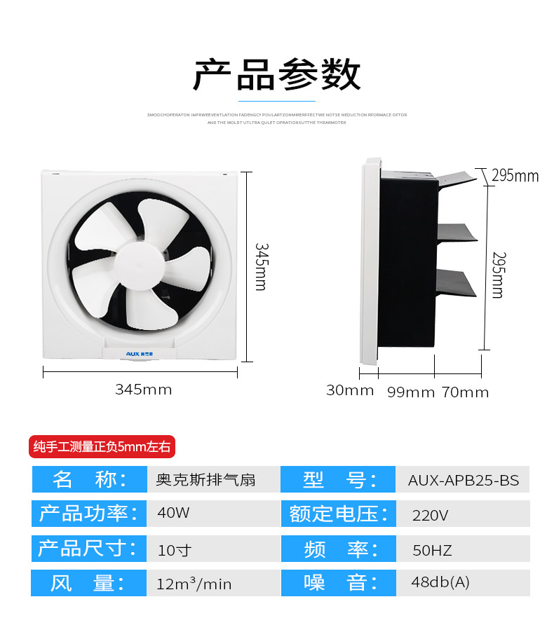 商品名称:奥克斯 排气扇家用换气扇厨房10寸 AUX-APB25-BS