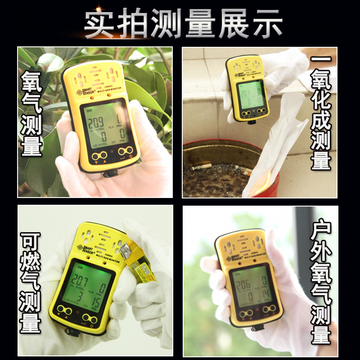 希玛 四合一气体检测仪可燃气体测试测量氧气硫化氢一氧化碳报警器 AS