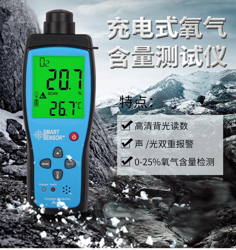希玛 氧气测试仪 氧气测定仪 氧气浓度测量仪 测氧仪 便携式 AR8100