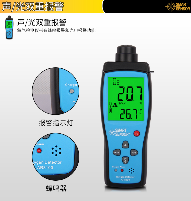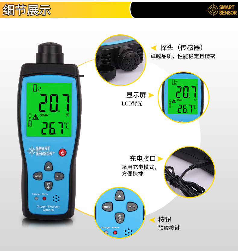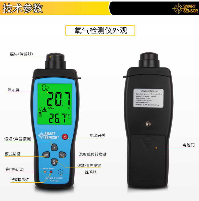商品名称:希玛 氧气测试仪 氧气测定仪 氧气浓度测量仪 测氧仪 便携式 AR8100