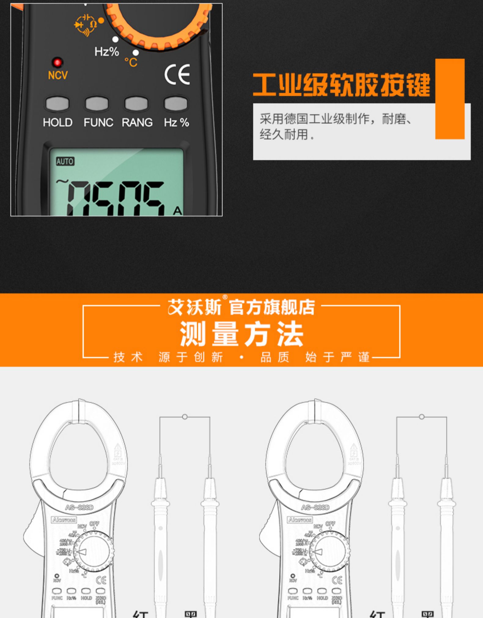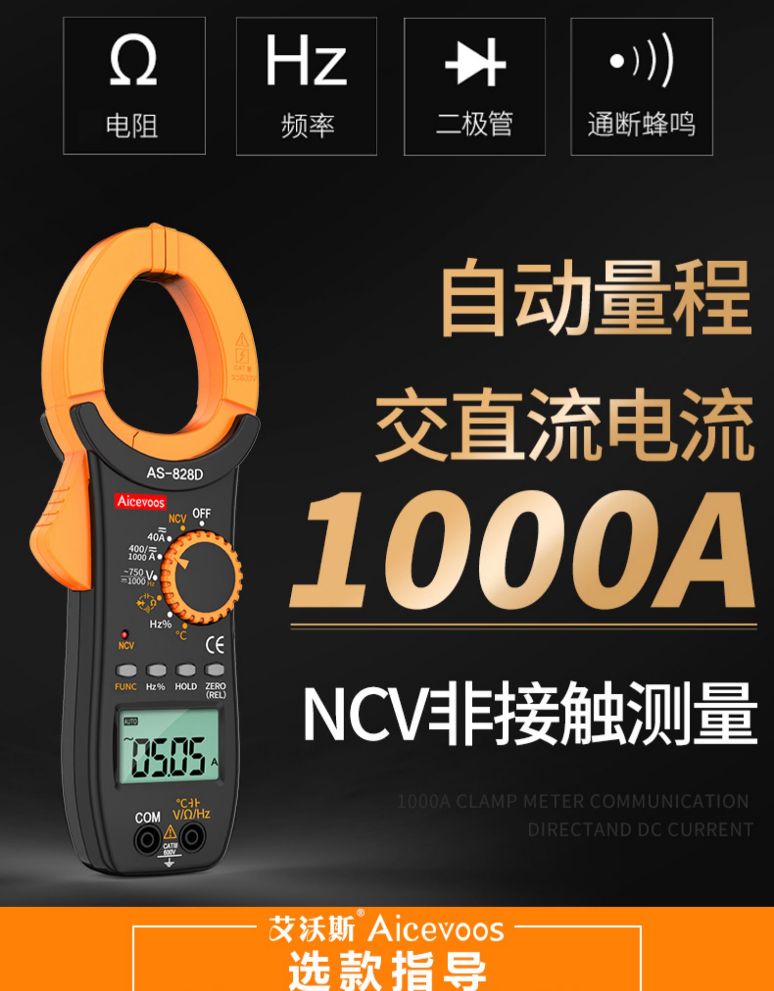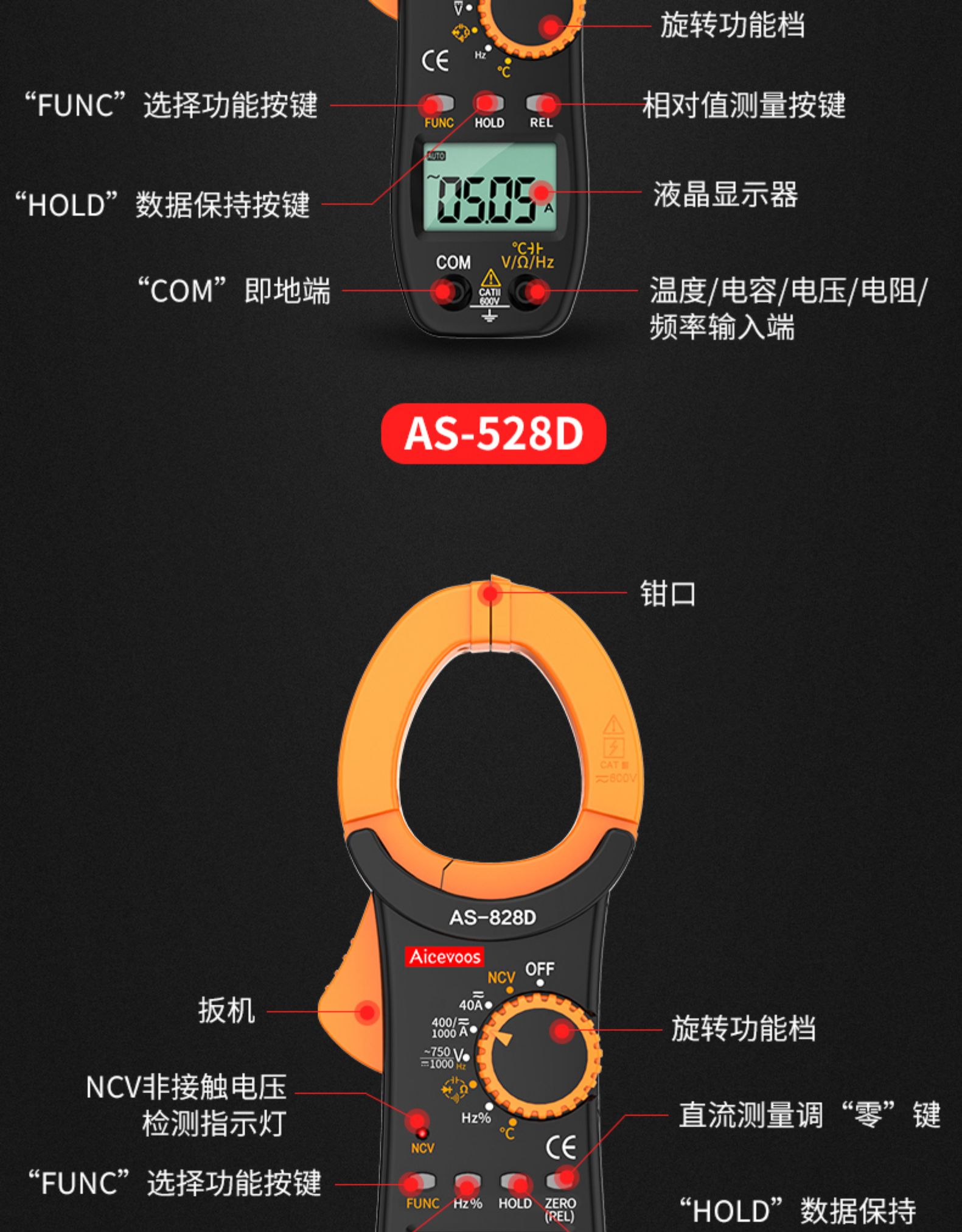 国产 高精度钳形表万用表数字电流表钳型钳流万能表交直流全自动多功能 AS-528/828