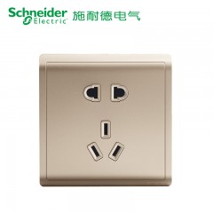 施耐德 开关 二三插 五孔插座墙壁电源 开关插座面板10A丰尚香槟金