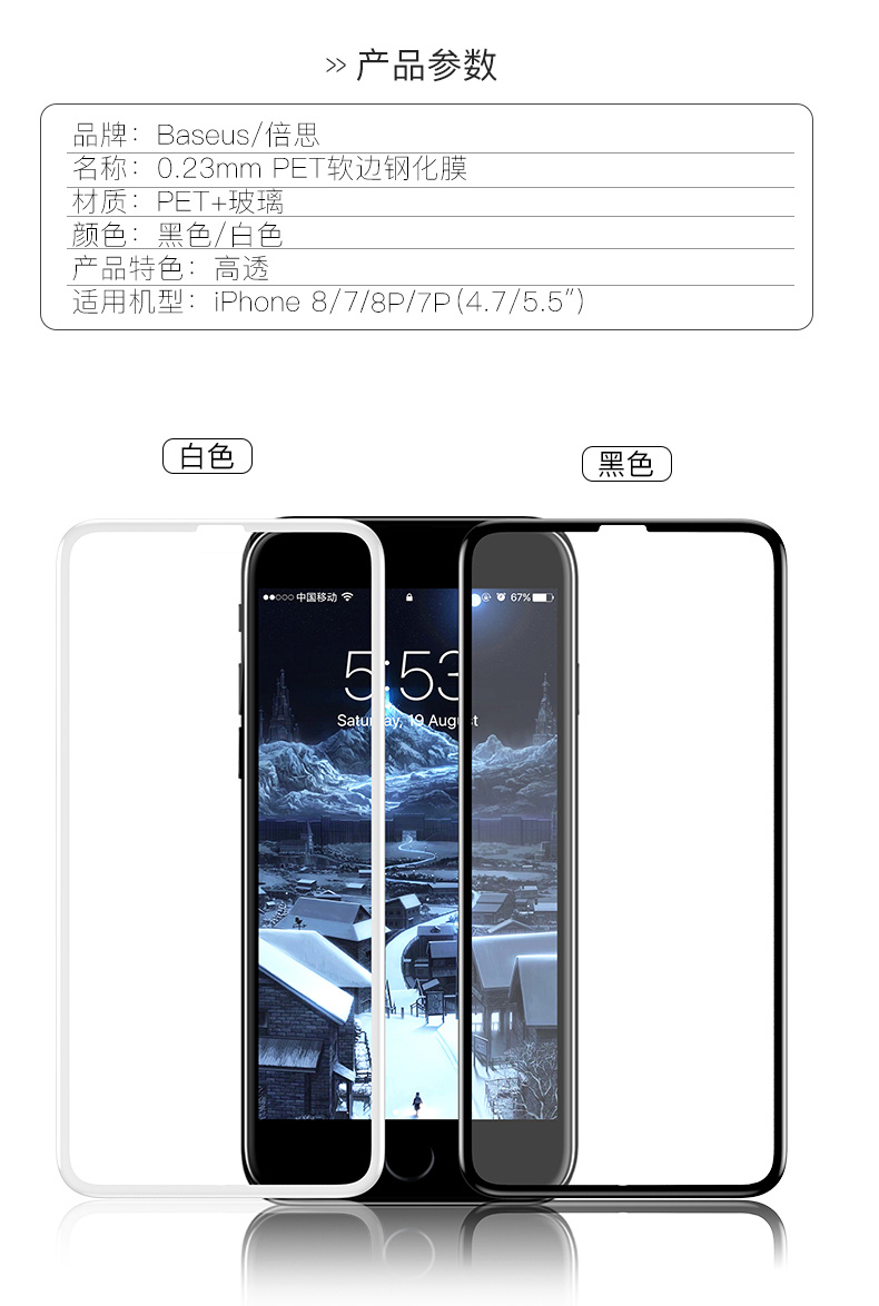 商品名称:倍思 苹果7钢化膜8plus全屏iphone7手机8蓝光水凝P全包7Plus贴膜七玻璃钻石全覆盖包边ip透明防摔抗蓝光防指纹