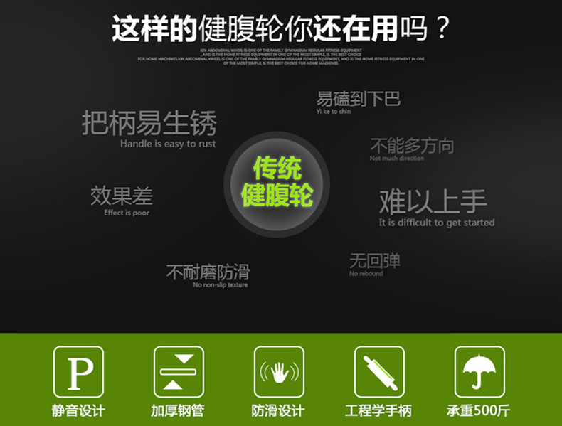 国产 健腹轮腹肌轮男士训练器收腹部马甲线健身器材家用女减肚子滚滑轮