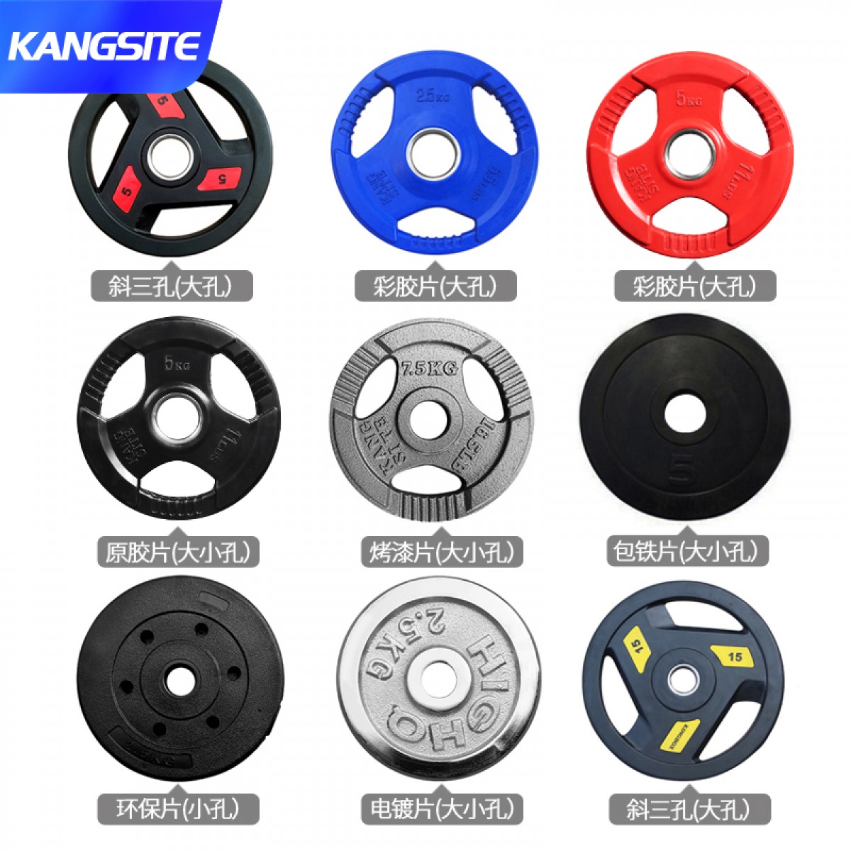 商品名称:国产 杠铃片大孔小孔片清仓处理电镀手抓烤漆片包胶环保家用健身哑铃片