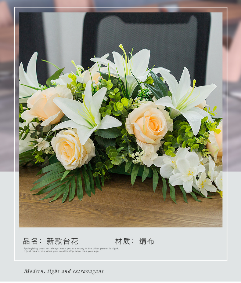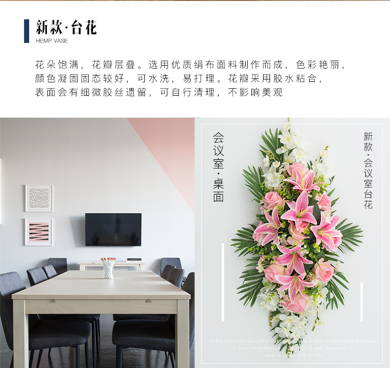 商品名称:国产 假花仿真花商务礼仪台花会议室办公桌花演讲台花酒店餐桌装饰花艺